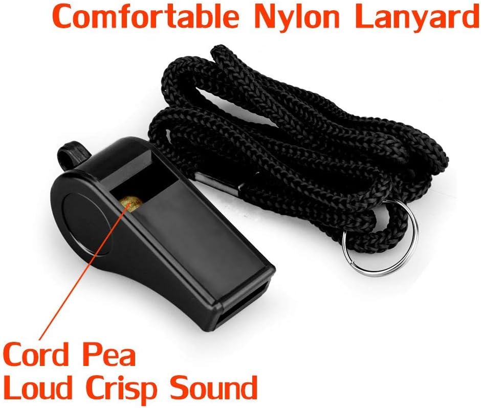 PACKAGE--- 2PCS plastic whistles with lanyards. These whistles are great for referees, coaches, training, teachers, survival, emergency, school, gym, etc.