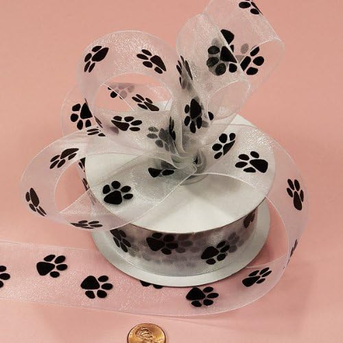 White Sheer Paw Prints Ribbon, 1-1/2" X 25Yd
