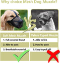 - ADAPTATION TIPS: Introduce the soft muzzle gradually by letting your dog wear it for a minute, rewarding with snacks, and repeating the process. With patience and consistency, your furry friend will eventually adapt to wearing the mesh muzzle without any issues.