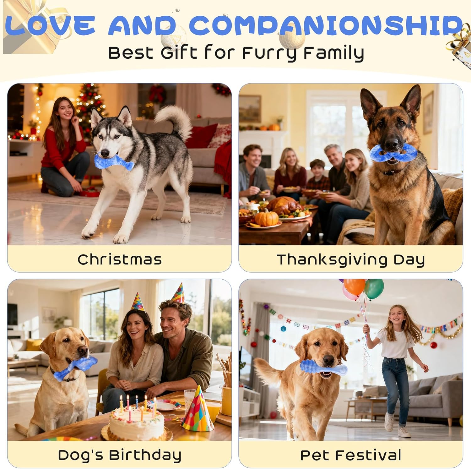 - Great Dog Gifts: On your dog's birthday and Christmas, I'm sure your furry family who like chewing will be thrilled to receive gifts of these great dog chews for aggressive chewers. Thanks for the companionship of our furry family members. They deserve the best dog toys. May you both be happy every day