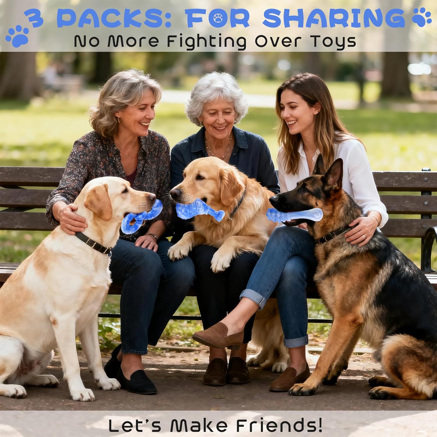 - Enjoy More Coffee Time: Good stuff is worth sharing. I bet he'll show off these super chewer dog toys large breed to his friends when going out. Haha, but with three dog toy pack, he can share and play with his best buddies. Plus, the mischievous furry kids won't fight over toys anymore with one for each. 3Pcs dog toys tough means 3X leisure time for you