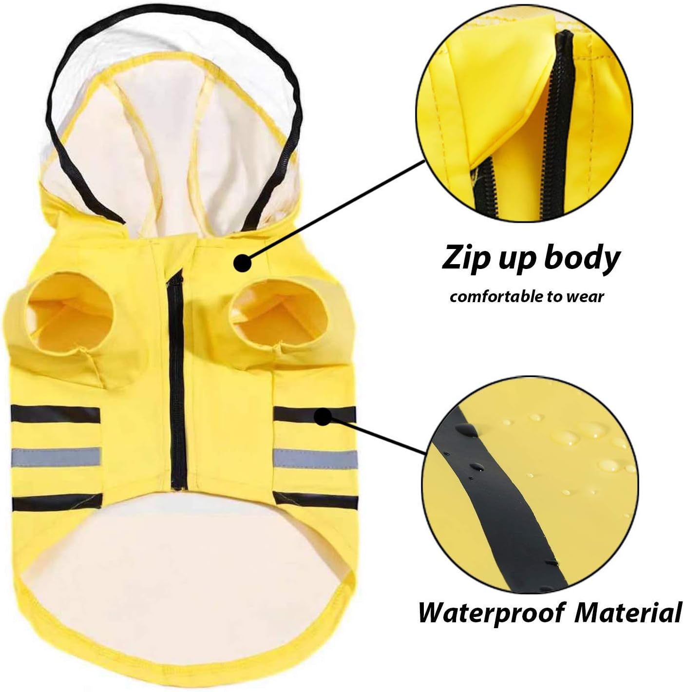 🐶[Dog Rain Jacket With Hood] - keep your pet comfortable and dry in all weather conditions.A harness hole on the collar of the coat which designed for the leash or collar. Let your dog use the leash while wearing this raincoat.