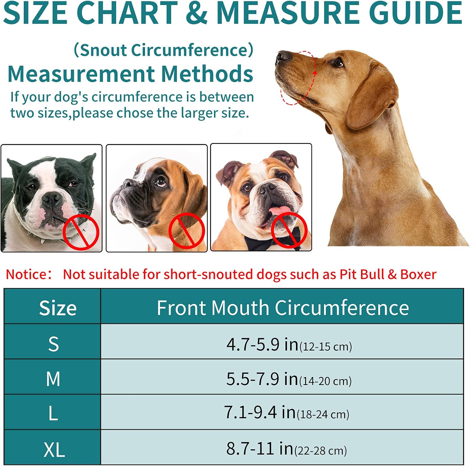 - Muzzle for Various Dog Sizes: Selecting the right size online is simplified with provided charts and measurement instructions for dog muzzle for large dogs, dog muzzle for small dogs, and medium-sized dogs. If you encounter any difficulties, our dedicated customer support is here to help resolve your sizing concerns and ensure a perfect fit for your dog muzzle.