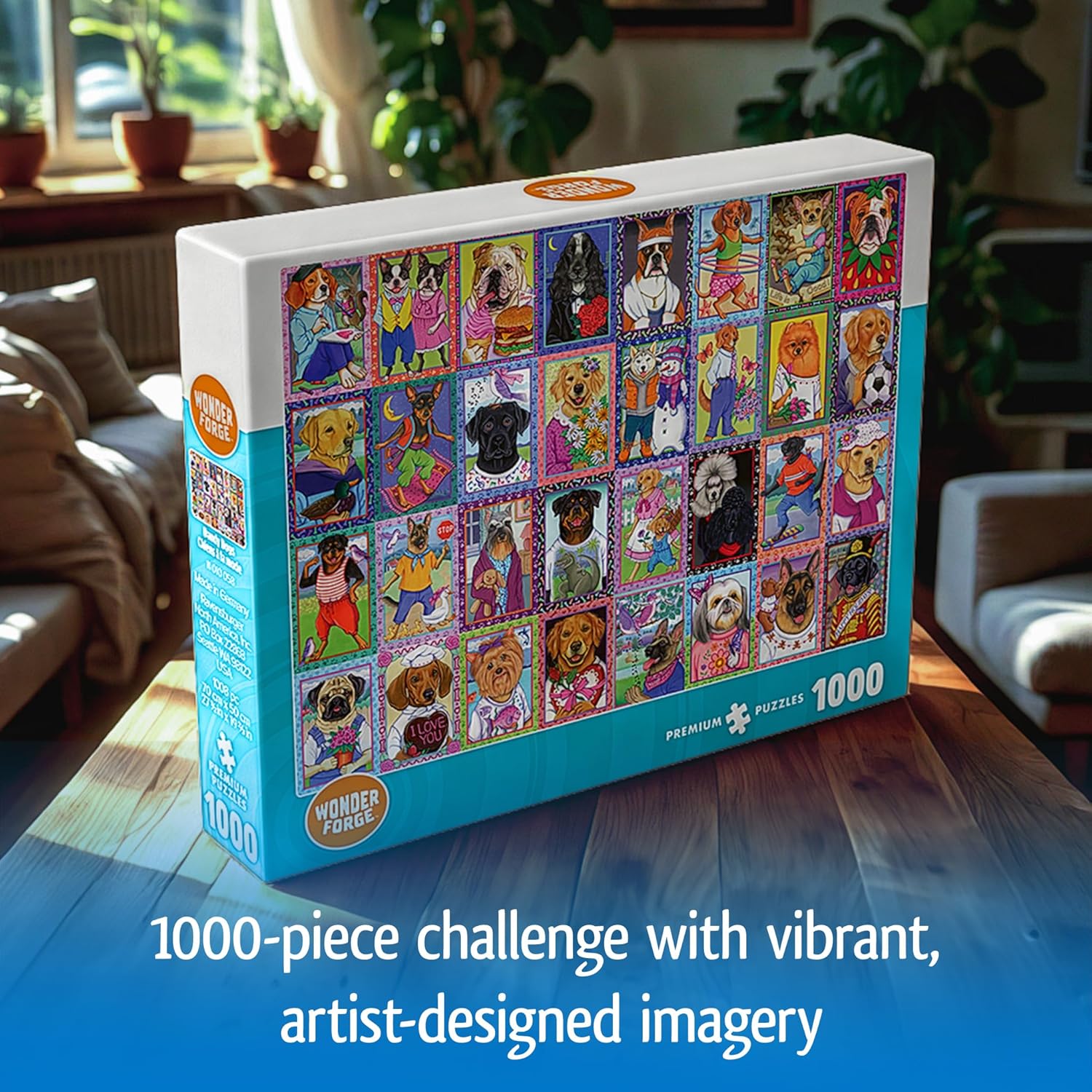 - UNIQUE JIGSAW PUZZLE: Experience the joy of solving the Dandy Dogs 1000 piece puzzle - a collage of dressed up dogs, with each piece uniquely crafted for a perfect fit.