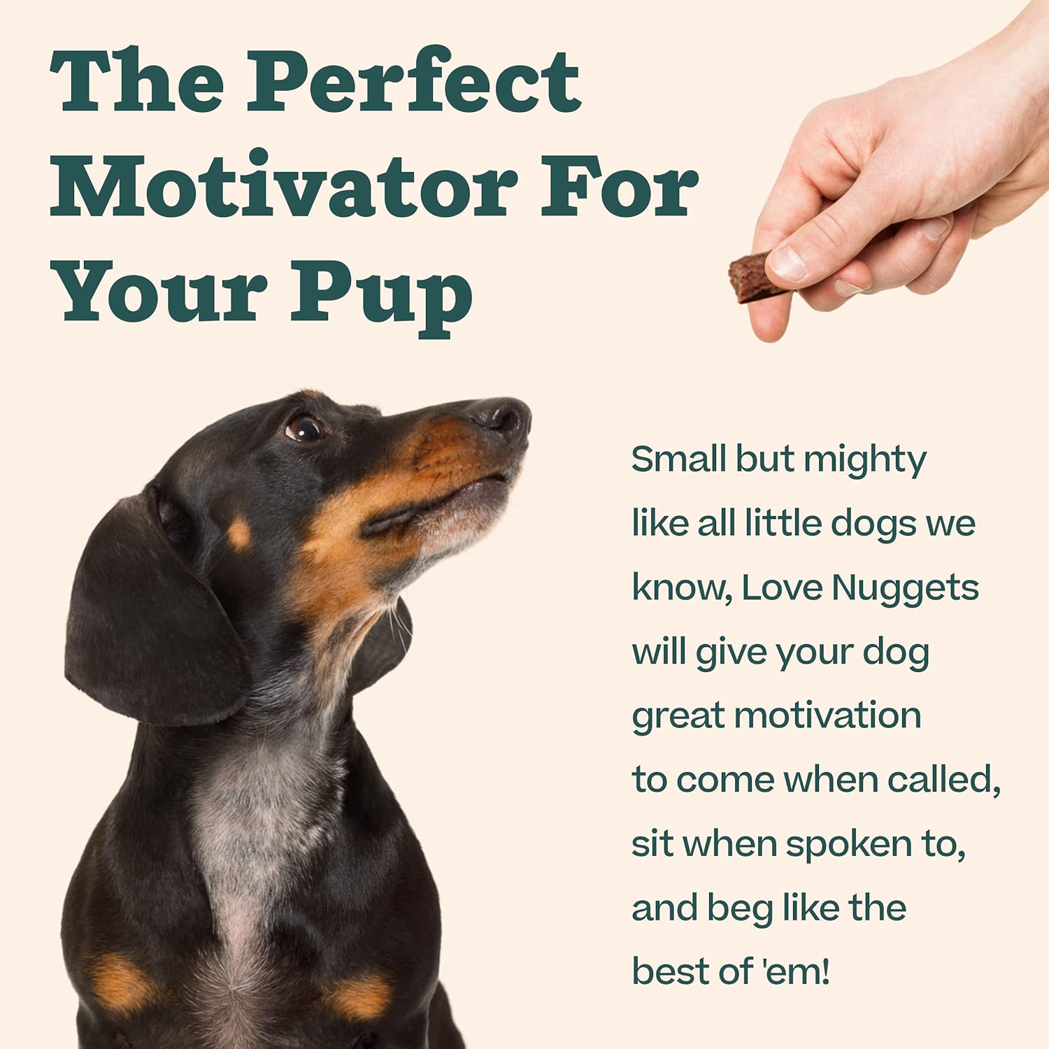 - High Protein Dog Treats: When it comes to dog treats, every dog owner wants to give their pup the most nutritious option. Even though Love Nuggets are small, bite-sized treats, they're a powerful, protein-rich dog snack that can motivate your pup during training. Your pup will love training with Love Nuggets.