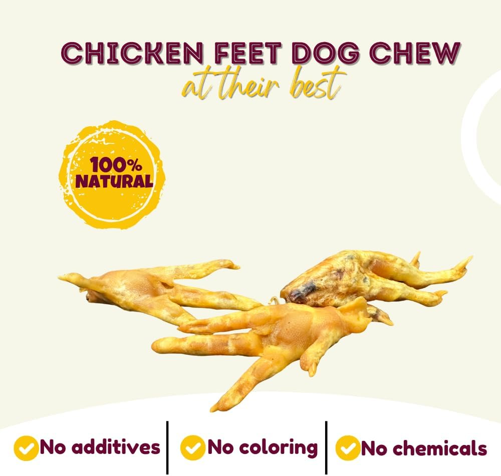 - Promotes Healthy Teeth - Chicken feet treats help maintain canine dental health by removing plaque with a tasty treat, while allowing your dog to use every part of their mouth to chew, and floss away tartar with all natural single ingredient dog treats