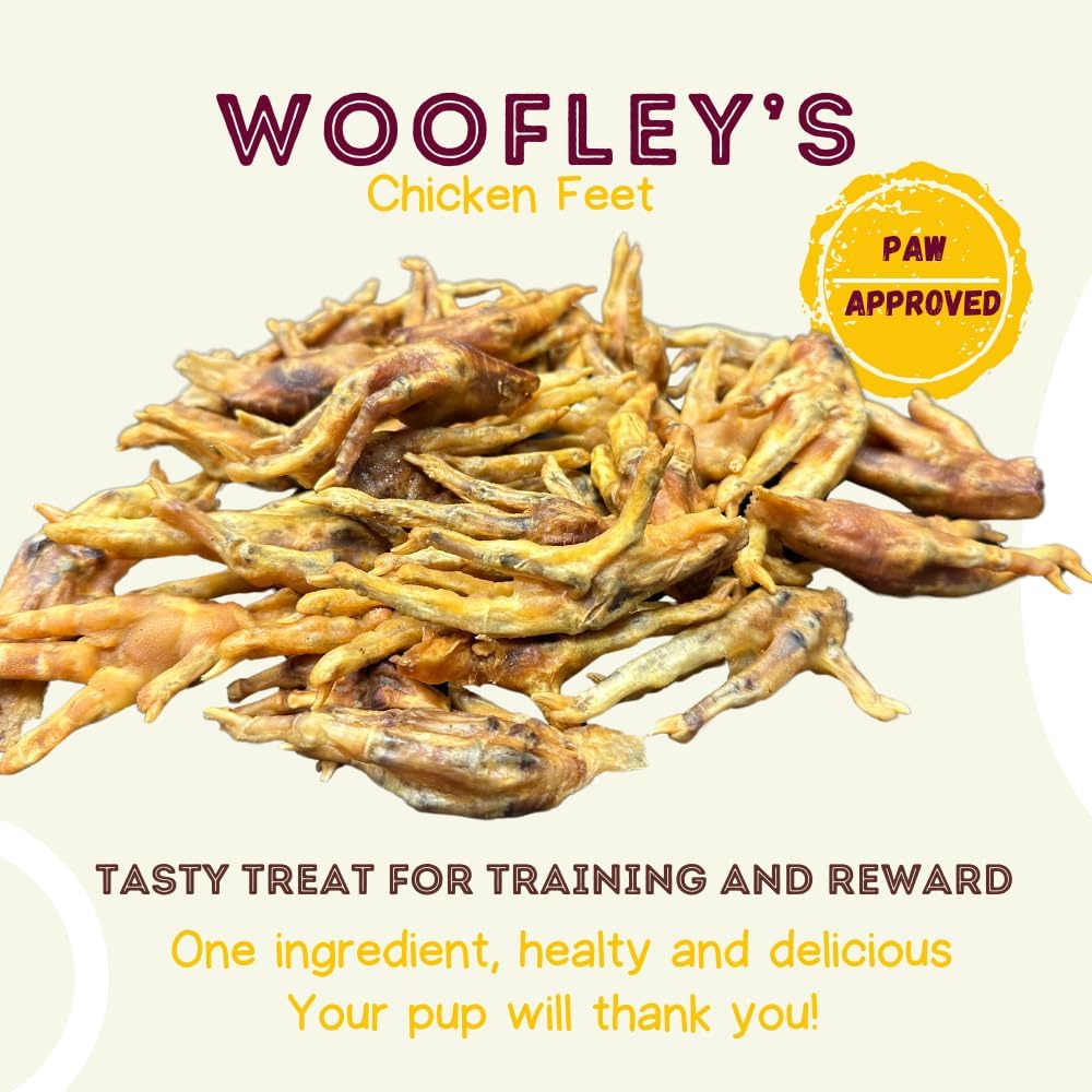 - Health & Safety - Woofley's chicken feet are full of vitamins and minerals that are perfect for maintaining your canine companions health and stature. Chicken feet may or may not contain nails as a natural product, please remove nails with a scissor prior to giving to your dog.