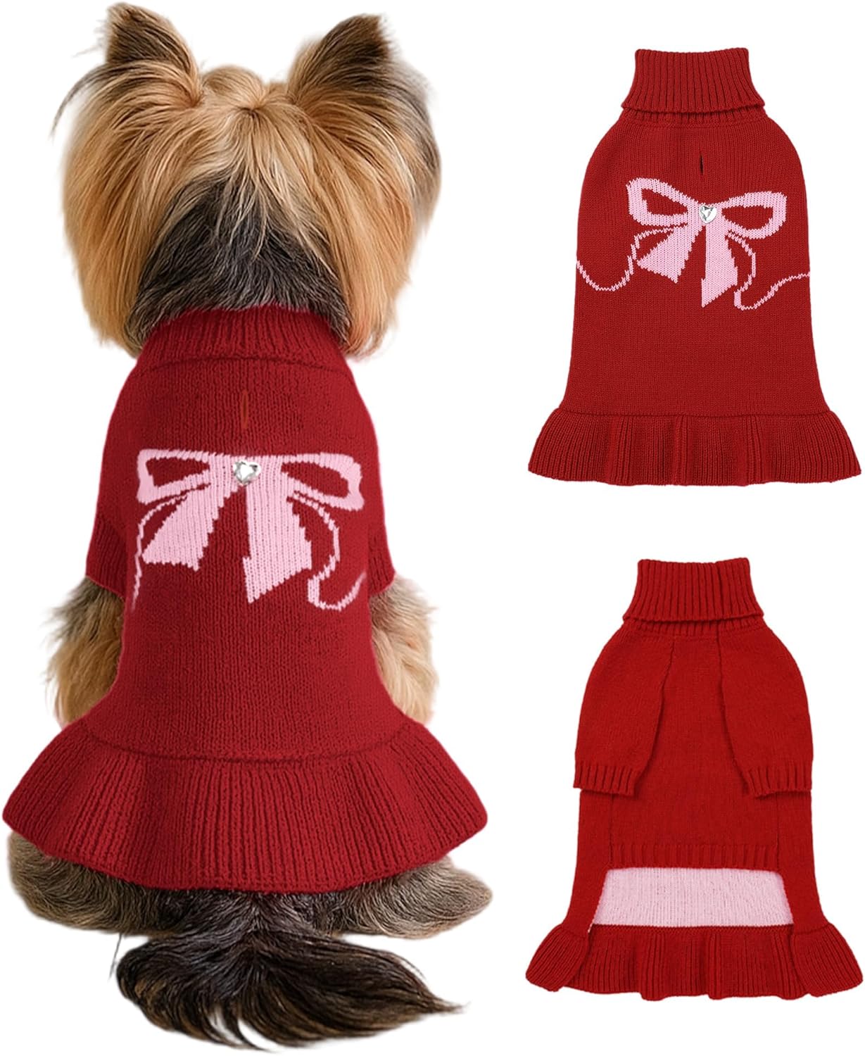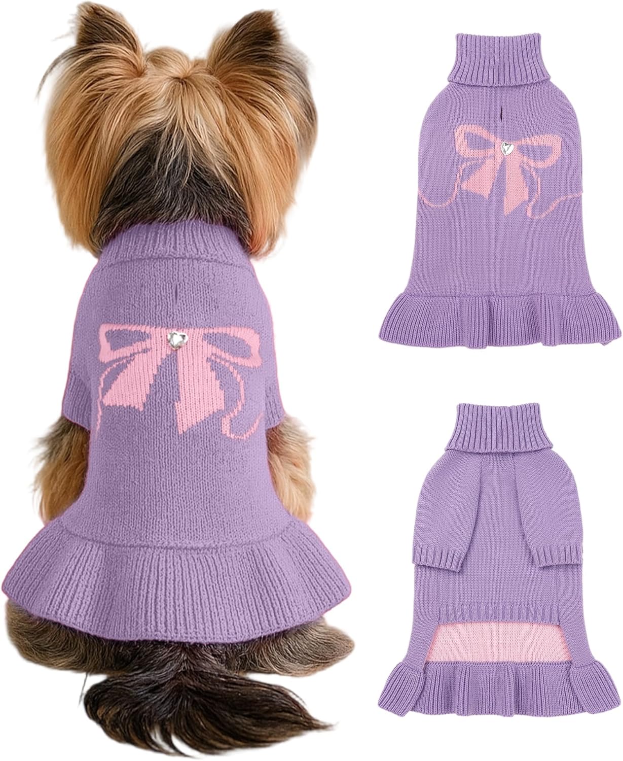 - Stylish & Comfortable Design : This small dog sweater dresses has a high neck and long sleeves for extra warmth, plus a cute skirt hem and a big bow on the back for a sweet touch. It's simple yet stylish, keeping your pet warm and looking great all winter