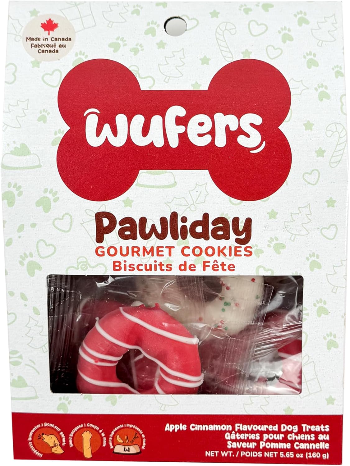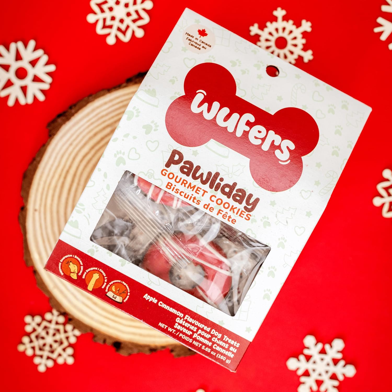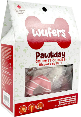 Treat your pup to bite-sized holiday joy with the Wufers Pawliday Sprinkled Small Bones Holiday Box! This festive box is filled with mini bone-shaped dog cookies coated in creamy yogurt icing and topped with red and green holiday sprinkles. Perfect for small dogs, training rewards, or sharing the spirit of the season, each cookie is crafted in North America using human-grade, locally sourced ingredients. Packaged in a holiday-themed gift box, this cheerful assortment is ready to delight your furry friend all season long.