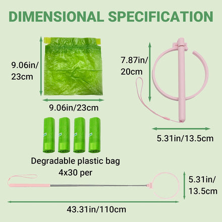 - 【Hygienic & Convenient】 This pooper scooper with bag attachment includes 120 disposable bags, so you never have to touch the mess. Simply slide the scoop into the bag for a clean, hygienic disposal every time you clean up.