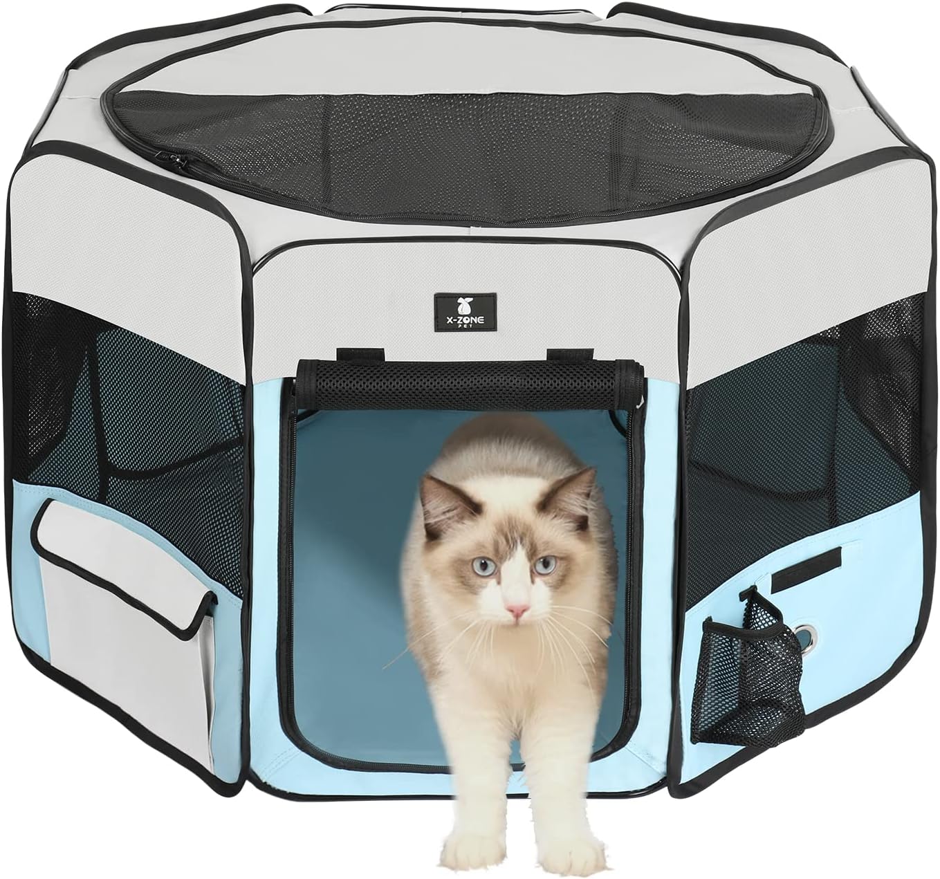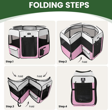 X-ZONE PET Dog Playpen Portable Pet Play Pens for Puppies, Cat, Rabbit, Chicks, Foldable Exercise Play Tent Kennel Crate, Indoor/Outdoor Travel Camping Pink Small