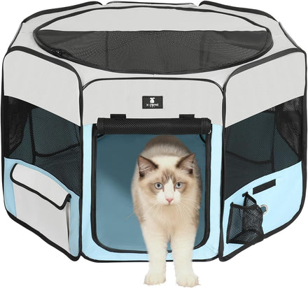 • The foldable pet playpen comes with a convenient carry case for easy storage and portability