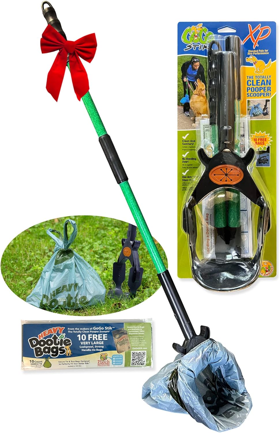 - Clean, Quick, and Convenient! Scoop Like the Pros With the GoGo Stik XP Professional Pooper Scooper. No Bending. No Touch or Stink and No After Cleanup. No Messing with the Hose and Stinky Chlorine Bucket!