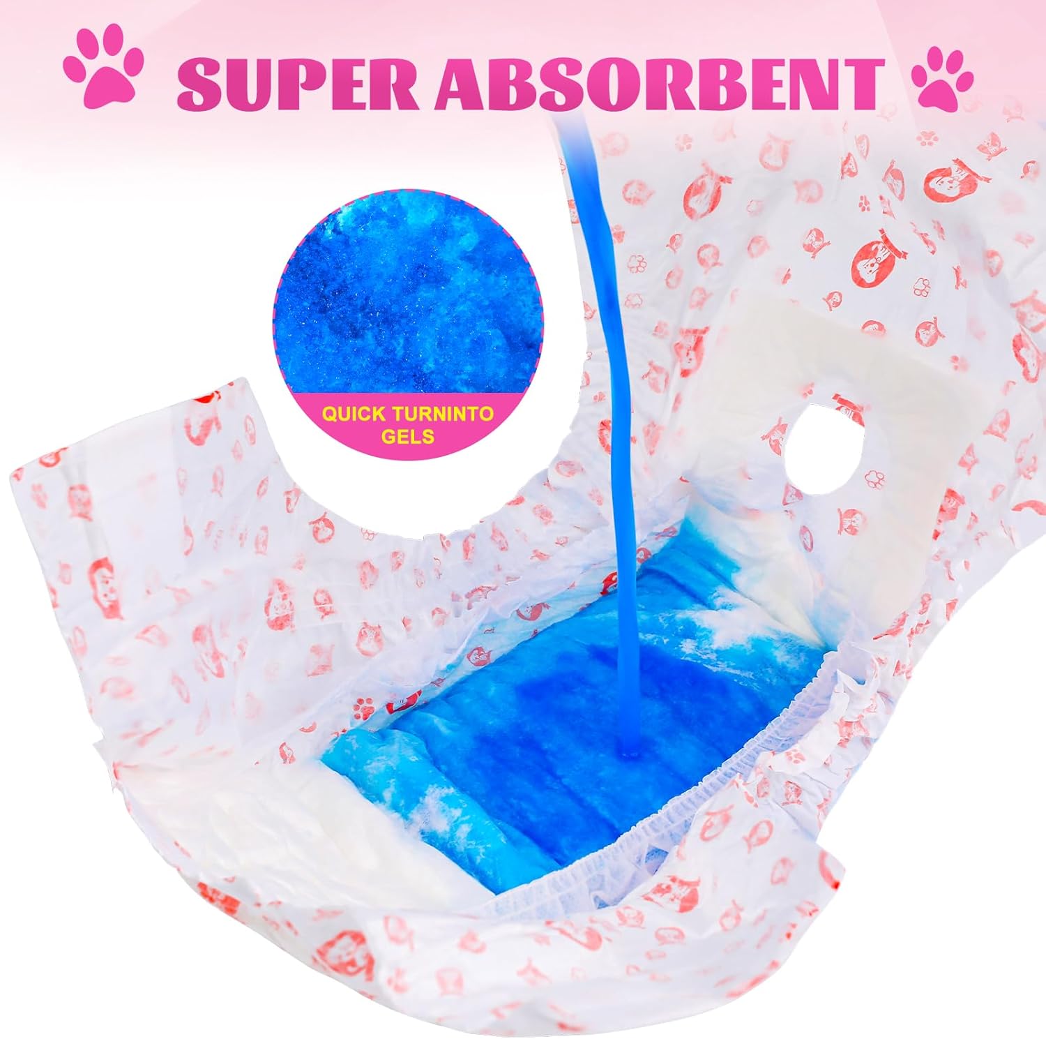 - COLOR CHANGING HUMIDITY INDICATOR - Our disposable puppy diapers can indicate it's time to change to a new diaper by changing the color of the packaging, keeping your pet comfortable. And the dog diaper adopts an adjustable waist design, which can be quickly and easily put on and off without sticking to the pet's fur