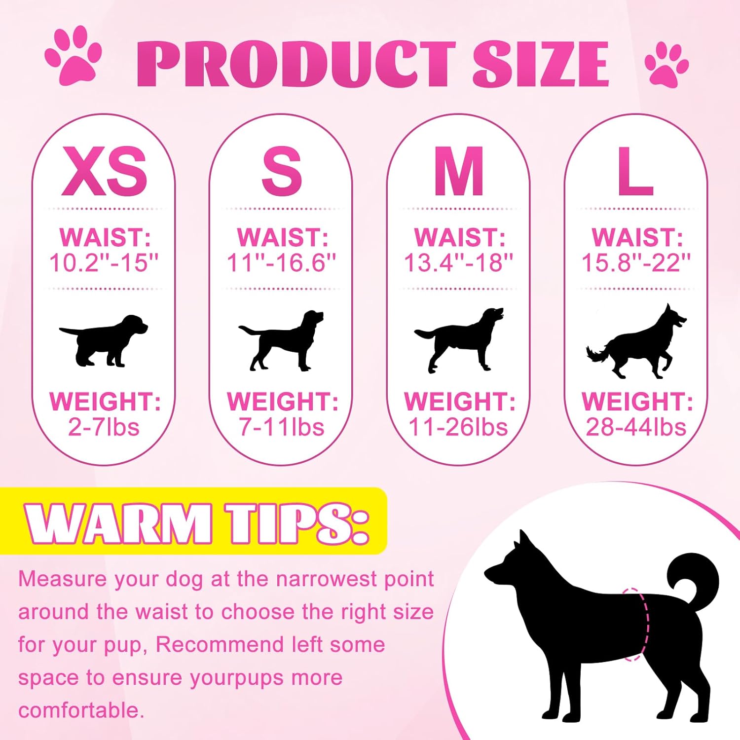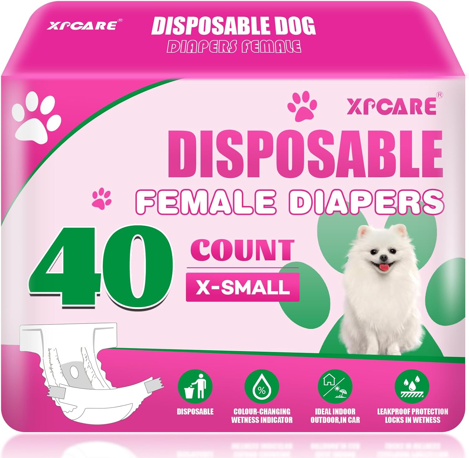 - DISPOSABLE DOG DIAPER - XPCARE Disposable dog diaper is a diaper designed specifically for female dogs, using soft and breathable materials to provide a comfortable fit. With our dog diapers, your furry friend can enjoy it to the fullest without worrying. There are four sizes to choose from, please check the size chart before ordering and use a tape measure to measure your dog correctly to obtain the correct size