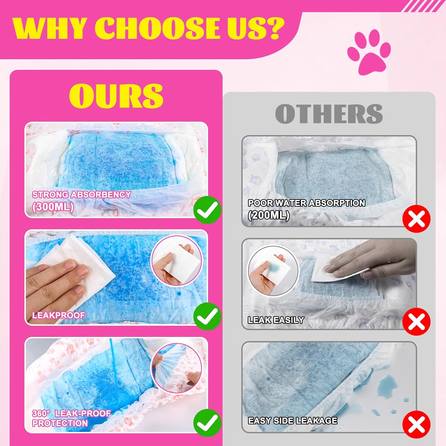 XPCARE disposable dog diapers are super absorbent and have a 360° leak-proof design to help you reduce your worries