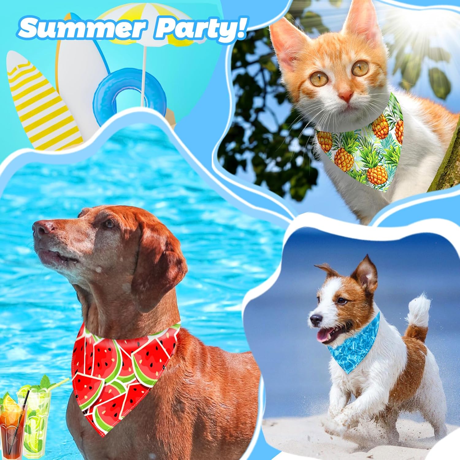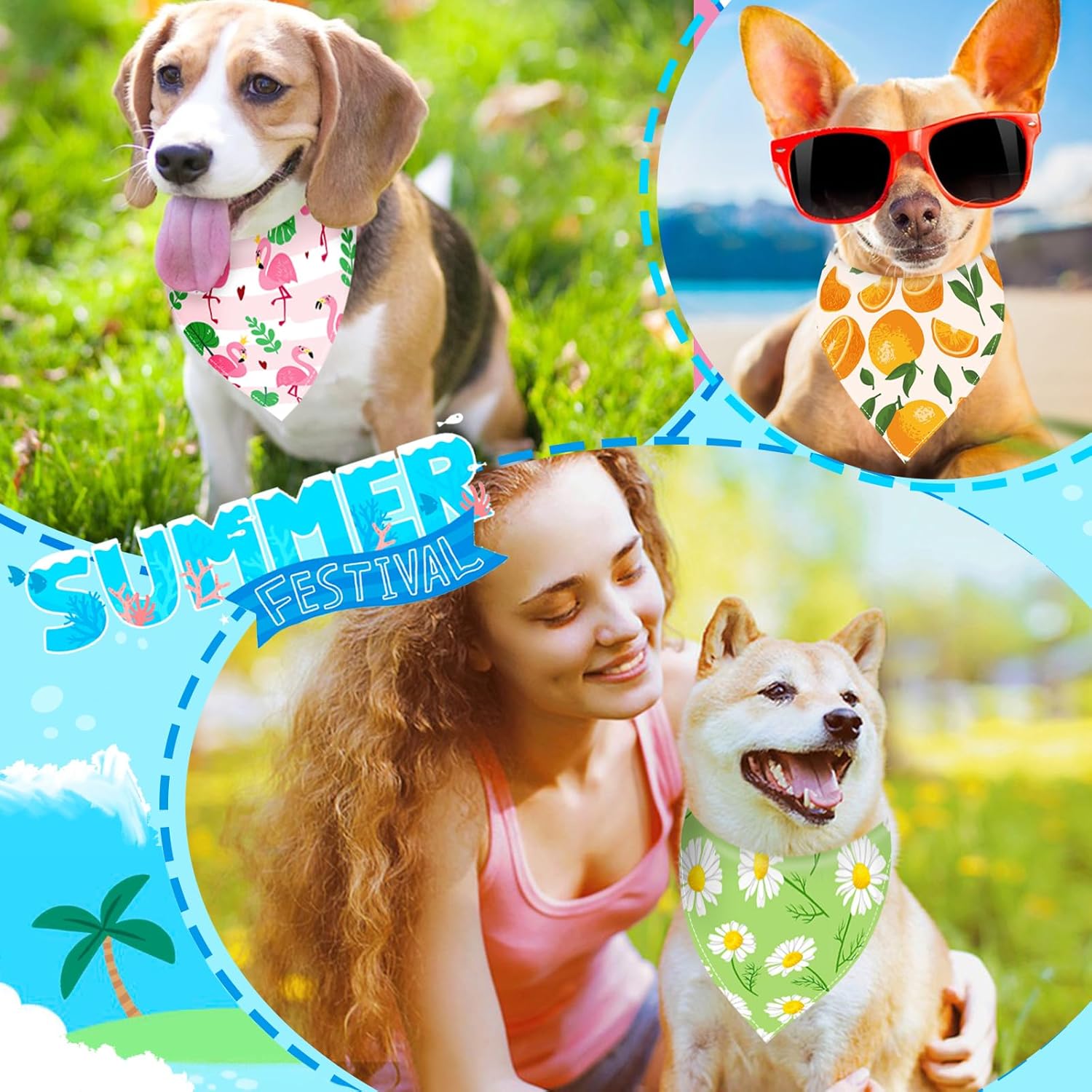 - Summer Themed Design for Easy Match: Our bandannas for dogs and cats are printed with various summer patterns on the surface, such as fruit, Hawaiian trees, flamingo and more. Making your pets look special and charming during summer season .