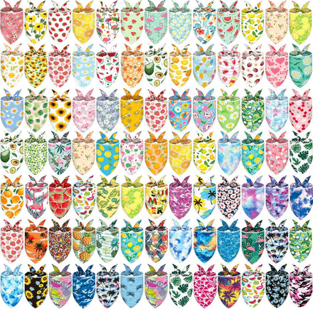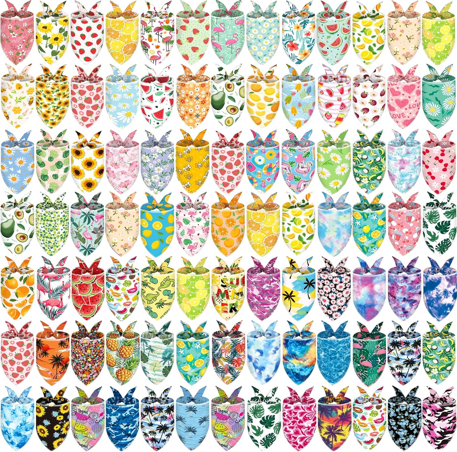 - 100 Pieces Dog bandanas: You will be provided with 100 pieces of summer dog bandana, available in bright colors and distinctive patterns, enough quantity and various styles that can meet your pet's different needs and daily changes