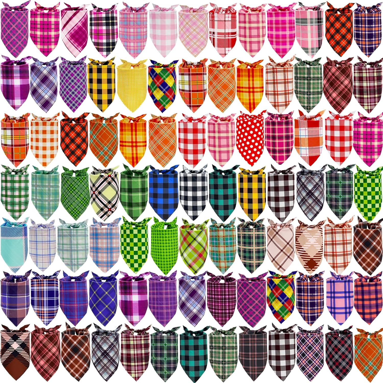 - 1、100 Pieces Dog bandanas: you will be provided with 100 pcs of plaid dog bandana, available in bright colors and distinctive patterns, enough quantity and various styles that can meet your pet's different styles of dressing needs and daily changes.