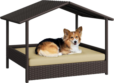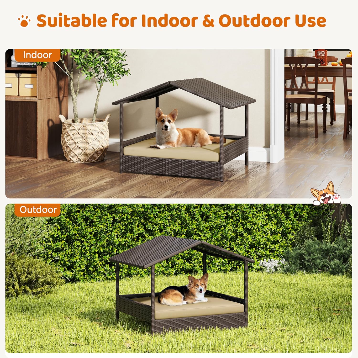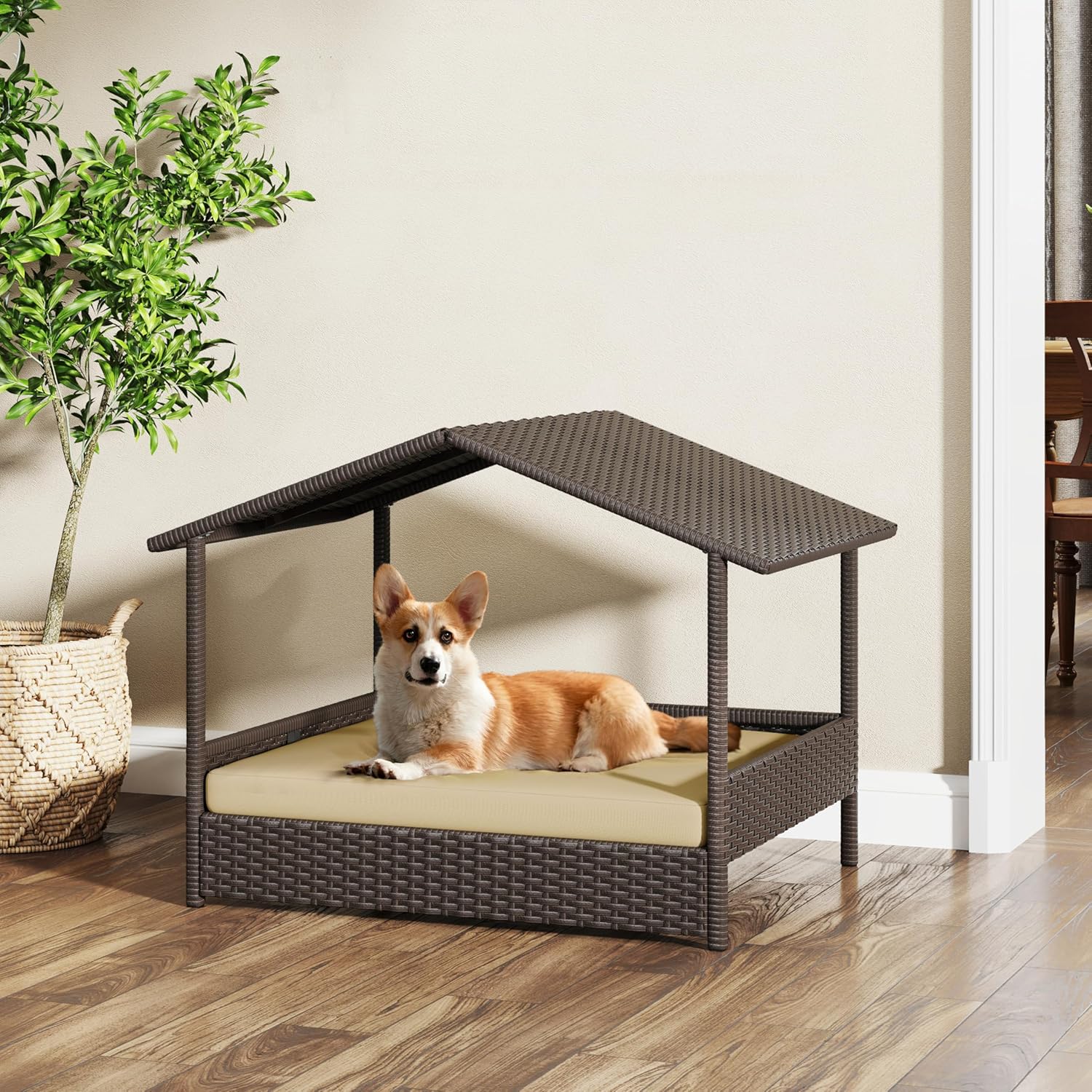 - Chew-Resistant for Active Puppies: Made from tight hand-woven HDPE rattan, this outdoor dog house stands up to energetic pups. Its tough weave can handle scratching paws and chewing teeth, offering lasting durability for your playful little ones