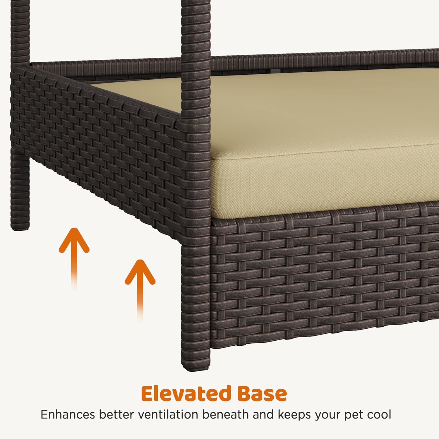 - Soft Cushion with Breathable Cover: The cushion of this rattan dog bed is filled with 2.4″ thick foam, ensuring comfort for your furry friend. Wrapped in durable, water-resistant nylon fabric, it protects against water, mud, and food crumbs