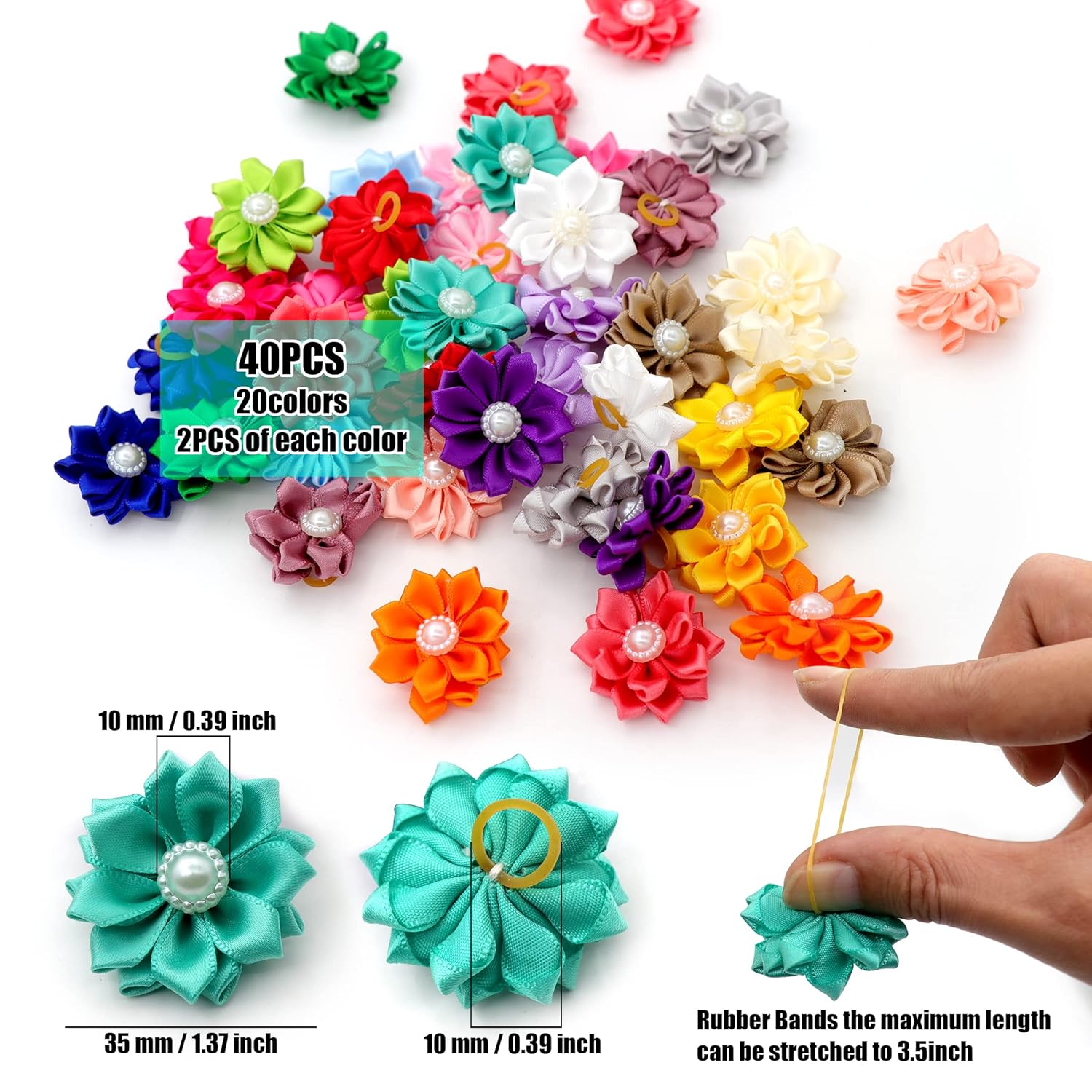 1.Flowers Backside with Rubber Bands,front side with White round pearl.