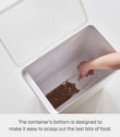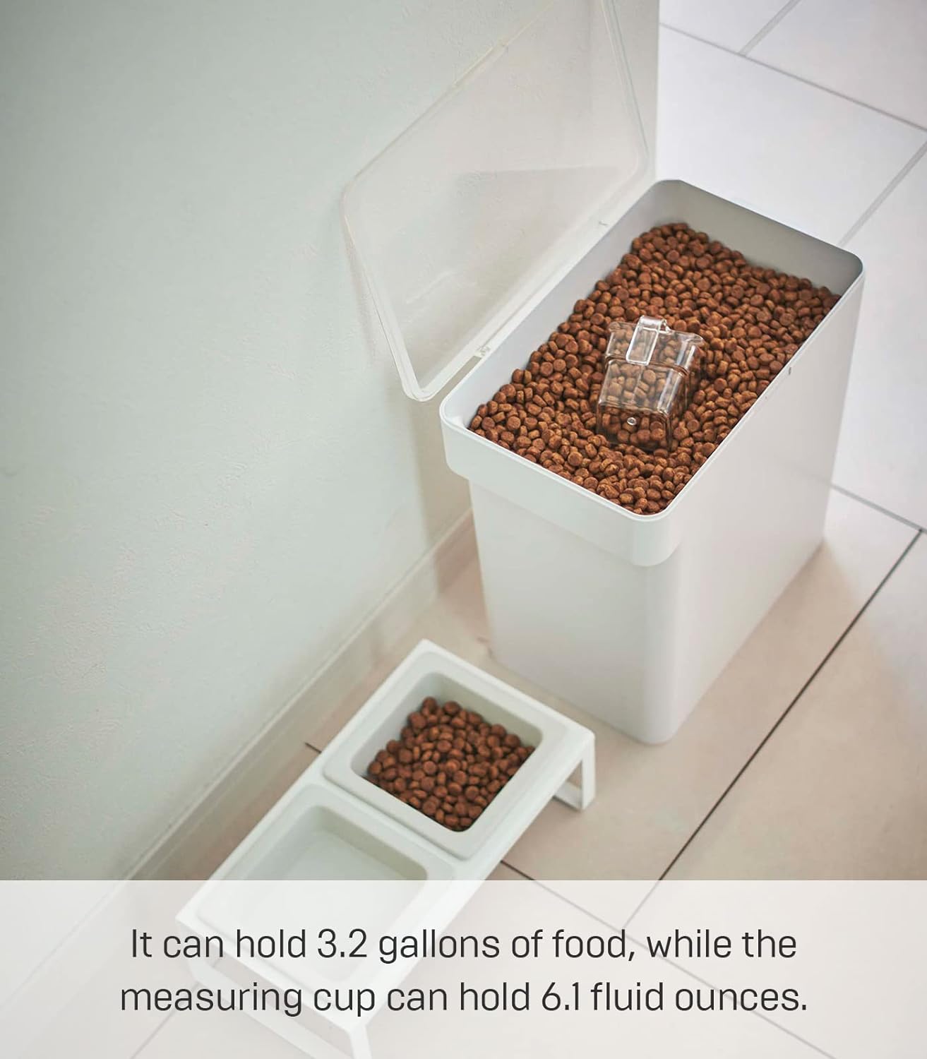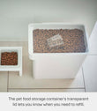 - THOUGHTFUL DESIGN: The pet food storage container's transparent lid lets you know when you need to refill, and the container's bottom is specifically designed to make scooping the last piece of food out easy with the included measuring cup.