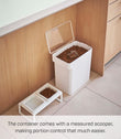 Leave pesky pet food bags behind with this modern pet food holder. Add to your pantry or storage space to keep your pet's food fresh and preserved. The sleek design hides clunky 15-pound pet food bags and adds a more streamlined aesthetic to your home. The transparent tops allows you to keep tabs on the quantity of available food and the pre-measured scoop makes it easy to feed your pooch at dinnertime.