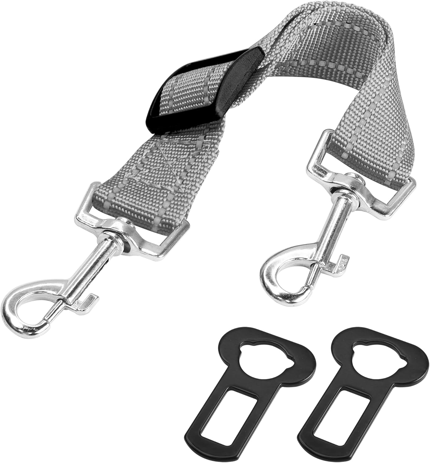 The YAODHAOD dog safety collar clips,prevent accidents,design for multiple collars on dogs training, effectively prevents them from escaping Made of high-quality reflective nylon belt, durable and hard to break,dog rope with 2 reflective strips, even at night is very safe. Adjust the length from 11"" to 14.5"" to fit your dog while growing and training. You can also connect the two ropes to get a longer extension rope. The double safety clip adopts alloy metal buckle, and 360° rotation Enables the dog to move freely without squeezing, binding, or restricting movement. Perfect for walking, jogging, cycling, hiking, training and other activities Tip collar safety clip comes with 2 seat belt clasps,keep your pet from climbing onto lap or into the front seat while you are driving with this dog safety belt for car. It allows you to remain concentrated on the road, and is a must-have pet travel accessories for you if you love bringing your dog for a drive. Widely compatible: Dog spare connectors can connect a wide variety of pet accessories, dog harnesses, prong collars, gentle leader, flat buckles, easy walk harnesses, martingale collars, pinch collars, and other collars. Simply and easily meet your needs. Mutil purpose:In addition to linking different dog collars, our connecting rope can be used in many more scenarios. For example, fasten the dog to the seat while you drive; Attach the dog to the side of the railing when you are resting outdoors; Attach the dog to the cart while you are shopping;Connect two dogs for a walk together when you have two dogs, etc. More ways of using waiting for you to discover.