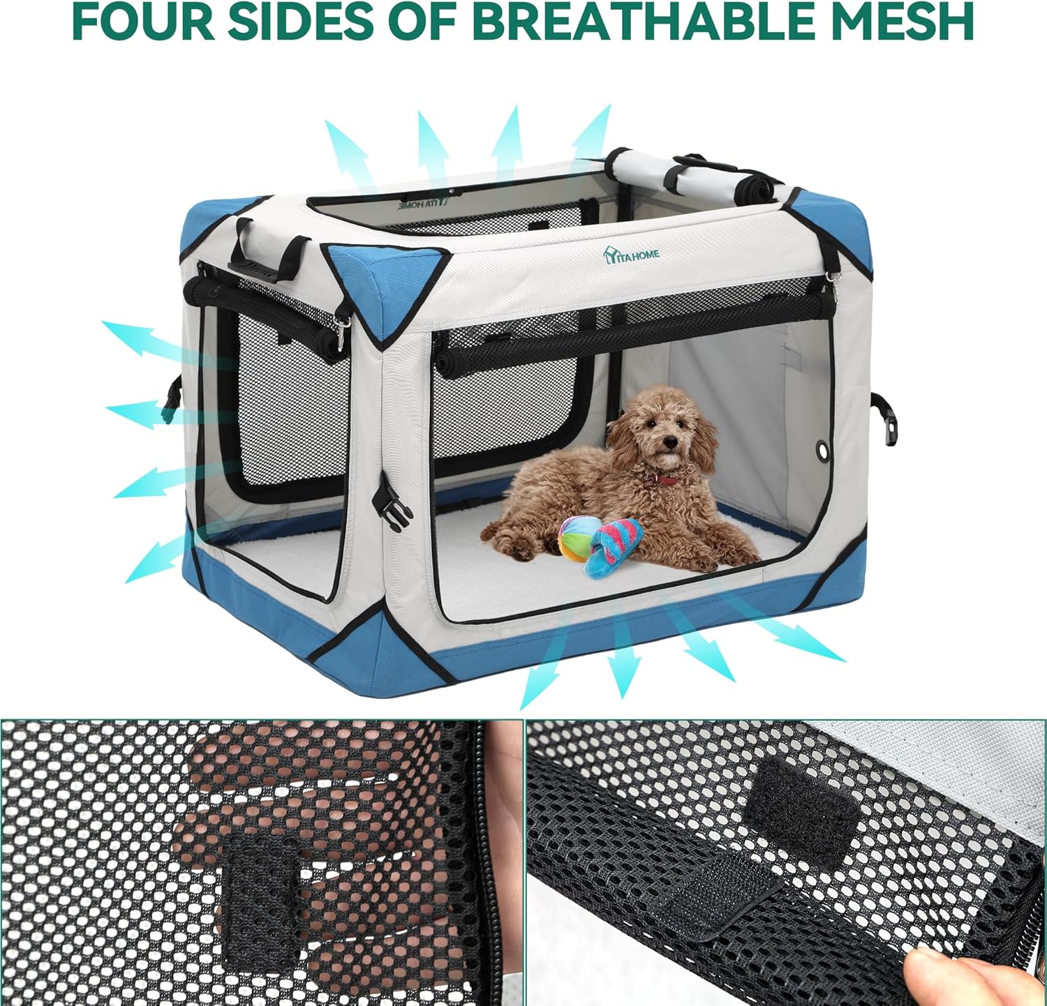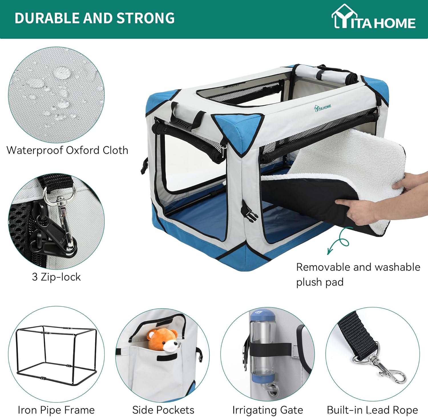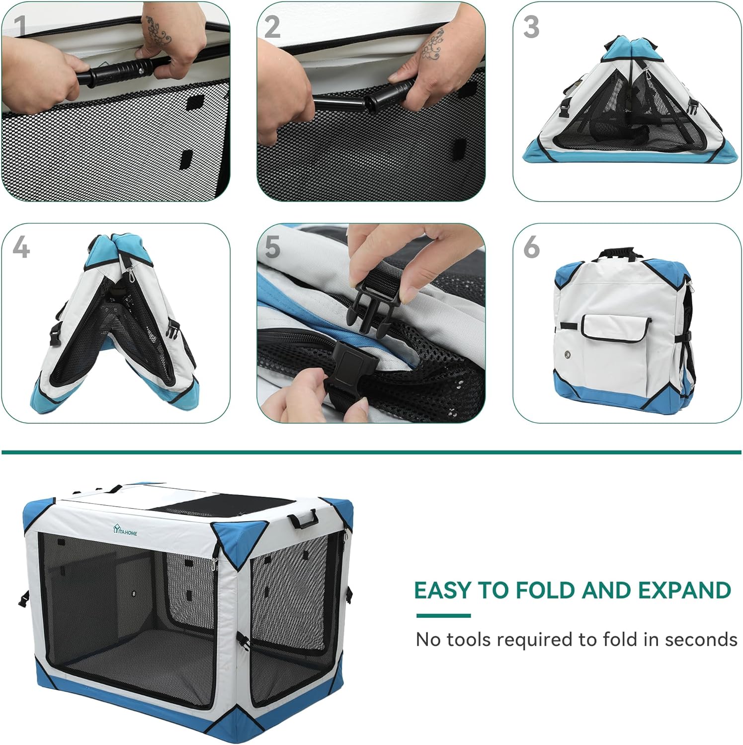 - 【Easy to Install】This soft dog crate can be effortlessly assembled in seconds without any tools; Can be conveniently folded flat for compact storage and portability to gain valuable space.