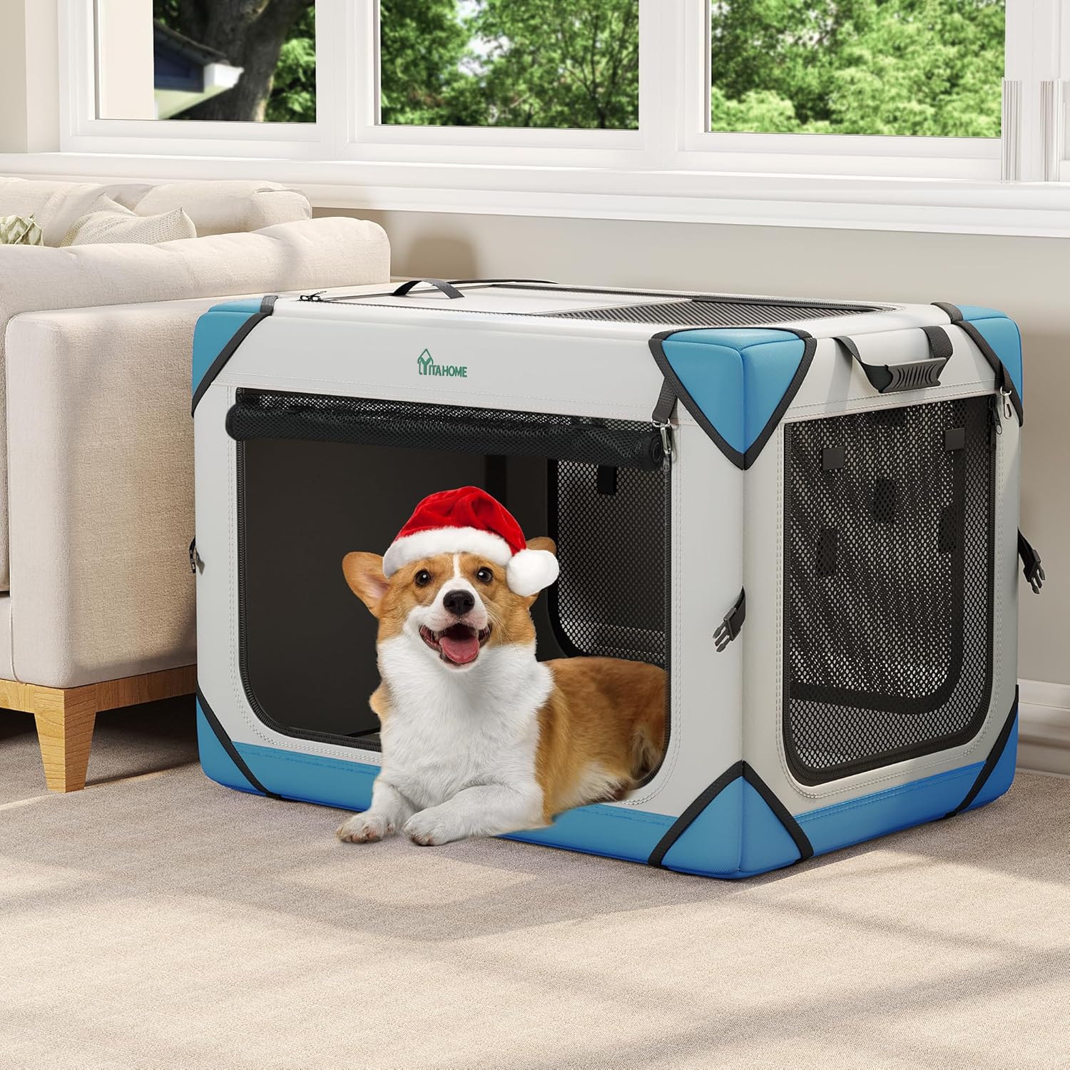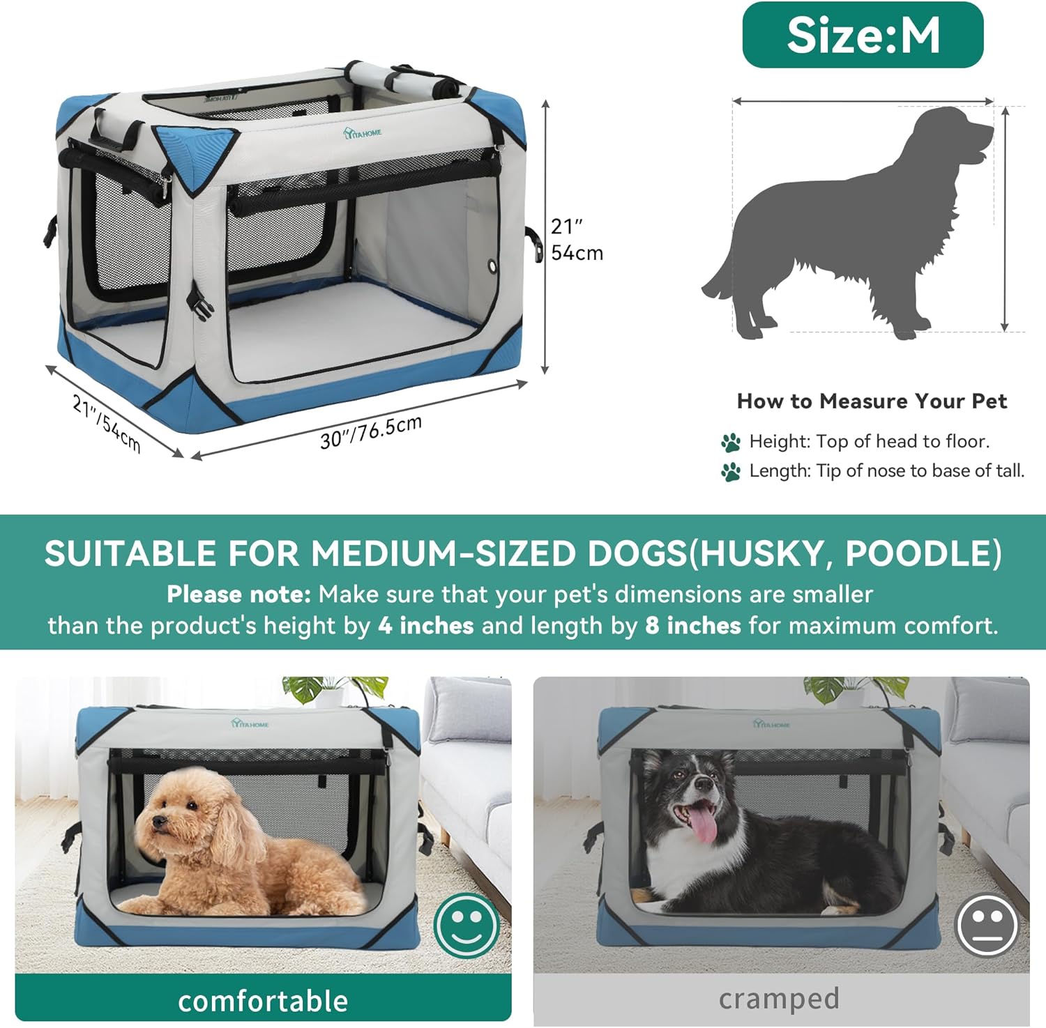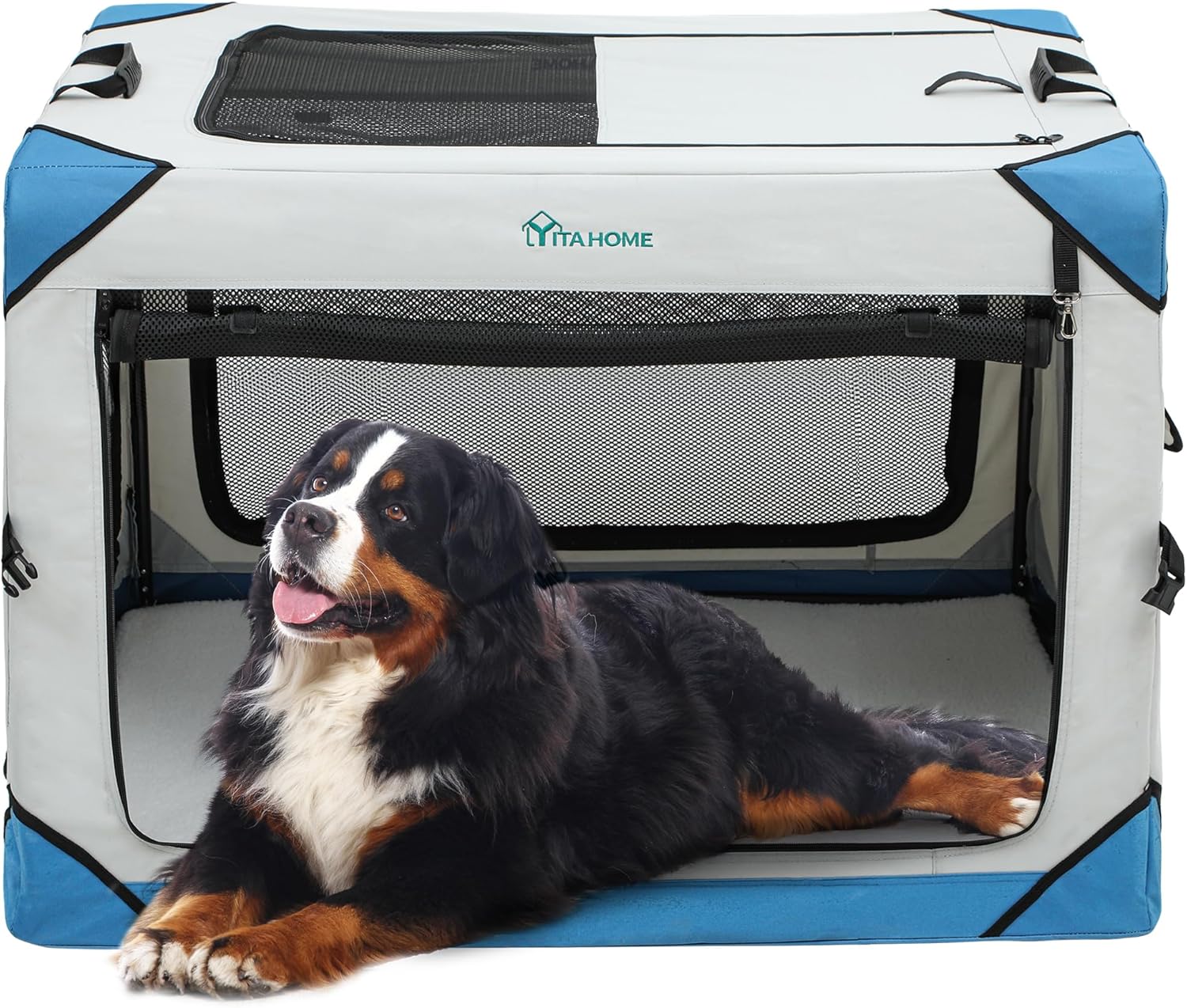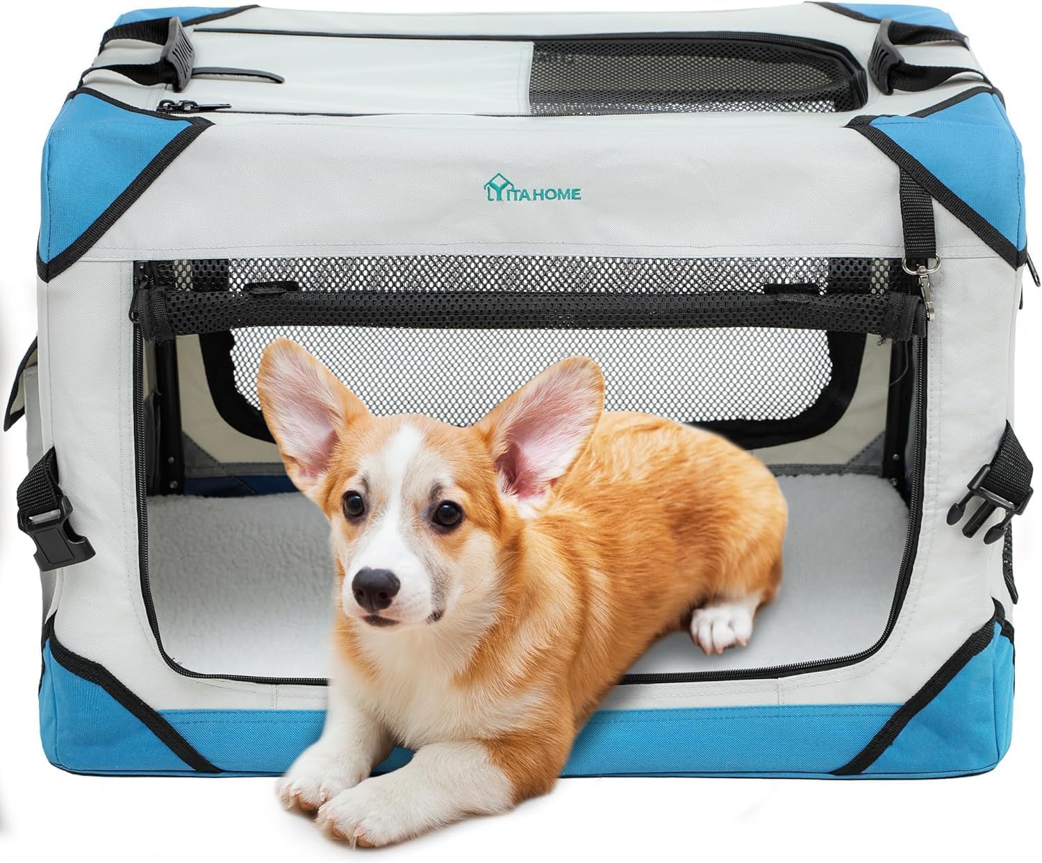 - 【Easy to Install】This soft dog crate can be effortlessly assembled in seconds without any tools; Can be conveniently folded flat for compact storage and portability to gain valuable space.
