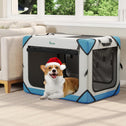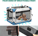 - 【Chewing Resistant & Waterproof】Crafted with durable eyelet mesh material, this four-door foldable dog crate easily withstands scratching and chewing; The crate's cover is made from waterproof Oxford cloth that can be easily cleaned with water.