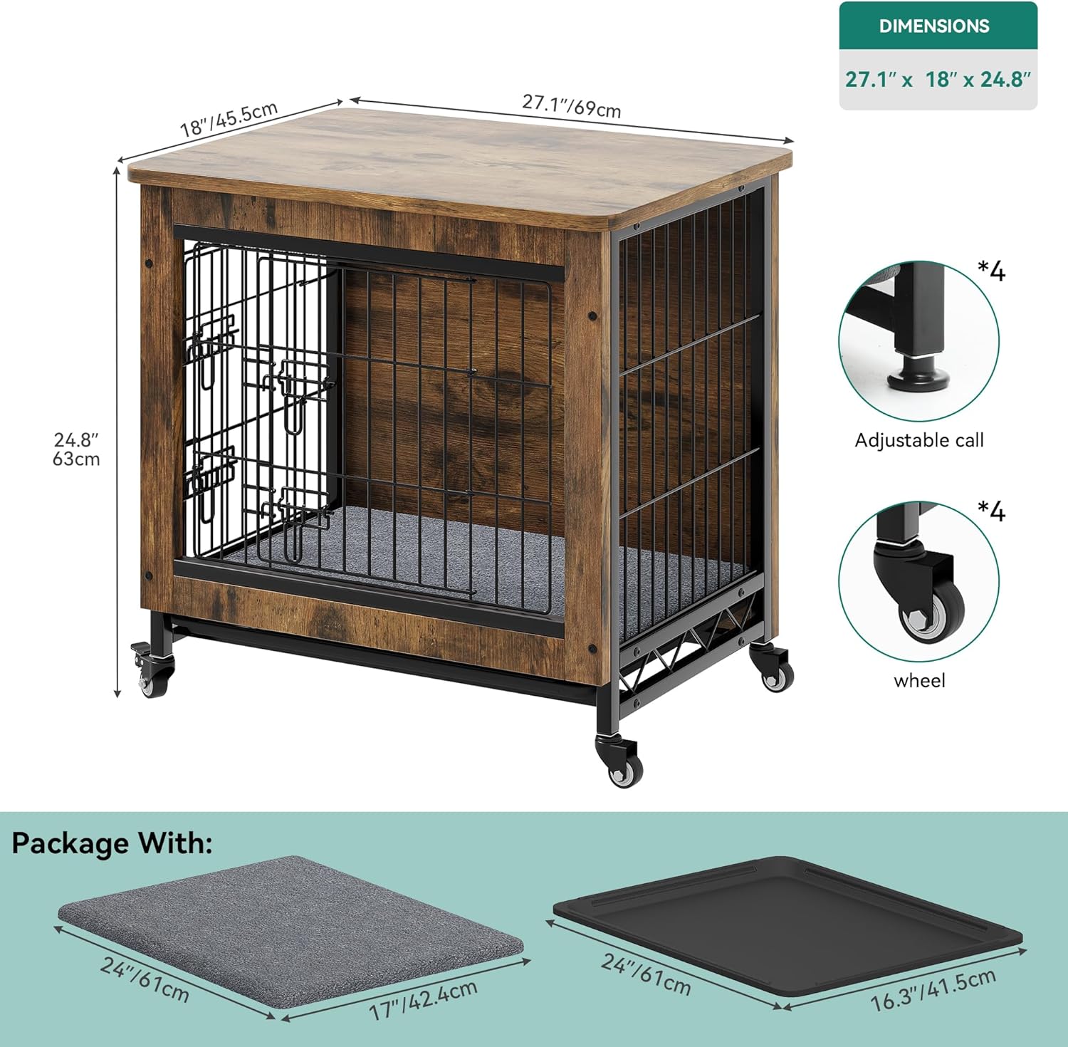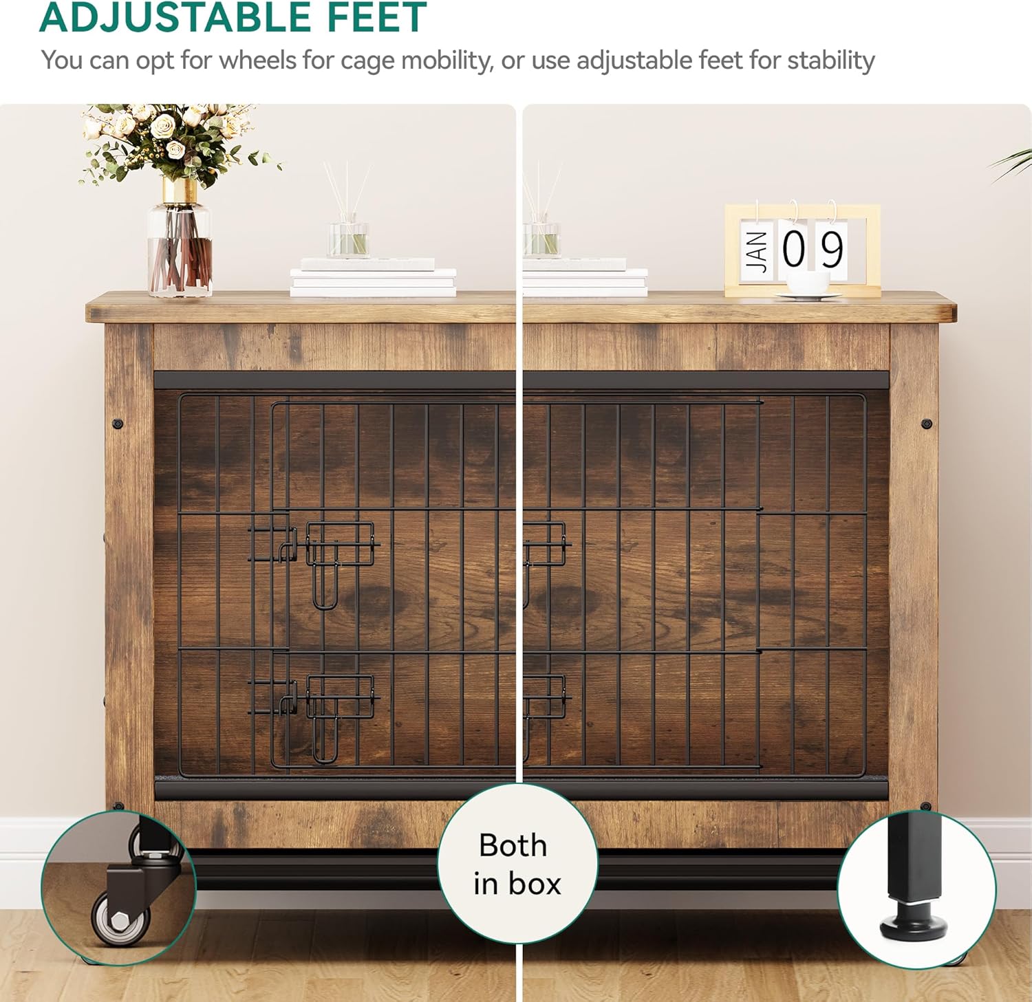 - Mobile and Stable: The dog cage sits on 4 wheels (2 with brakes) so it can be easily moved and securely positioned anywhere in your home; The adjustable feet ensure stability on uneven floors, providing your pet with a steady and safe environment