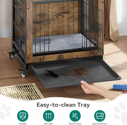 - Comfortable & Clean: The included comfy cushion in the dog crate offers your pet a warm and relaxing area to rest and sleep; The pull-out tray makes it easy to clean up any mess, keeping the dog kennel and your room tidy and odorless