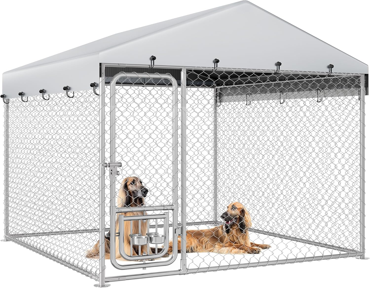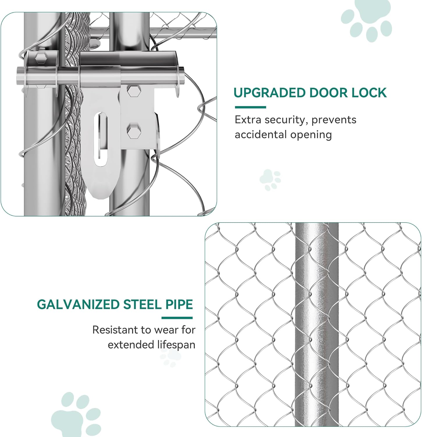 - Unmatched Durability: Built from heavy-duty galvanized steel, our dog kennel offers a safe haven for your playful pup; Anchored with ground stakes for rock-solid stability, it features an upgraded lock to keep them secure, ideal for carefree outdoor fun