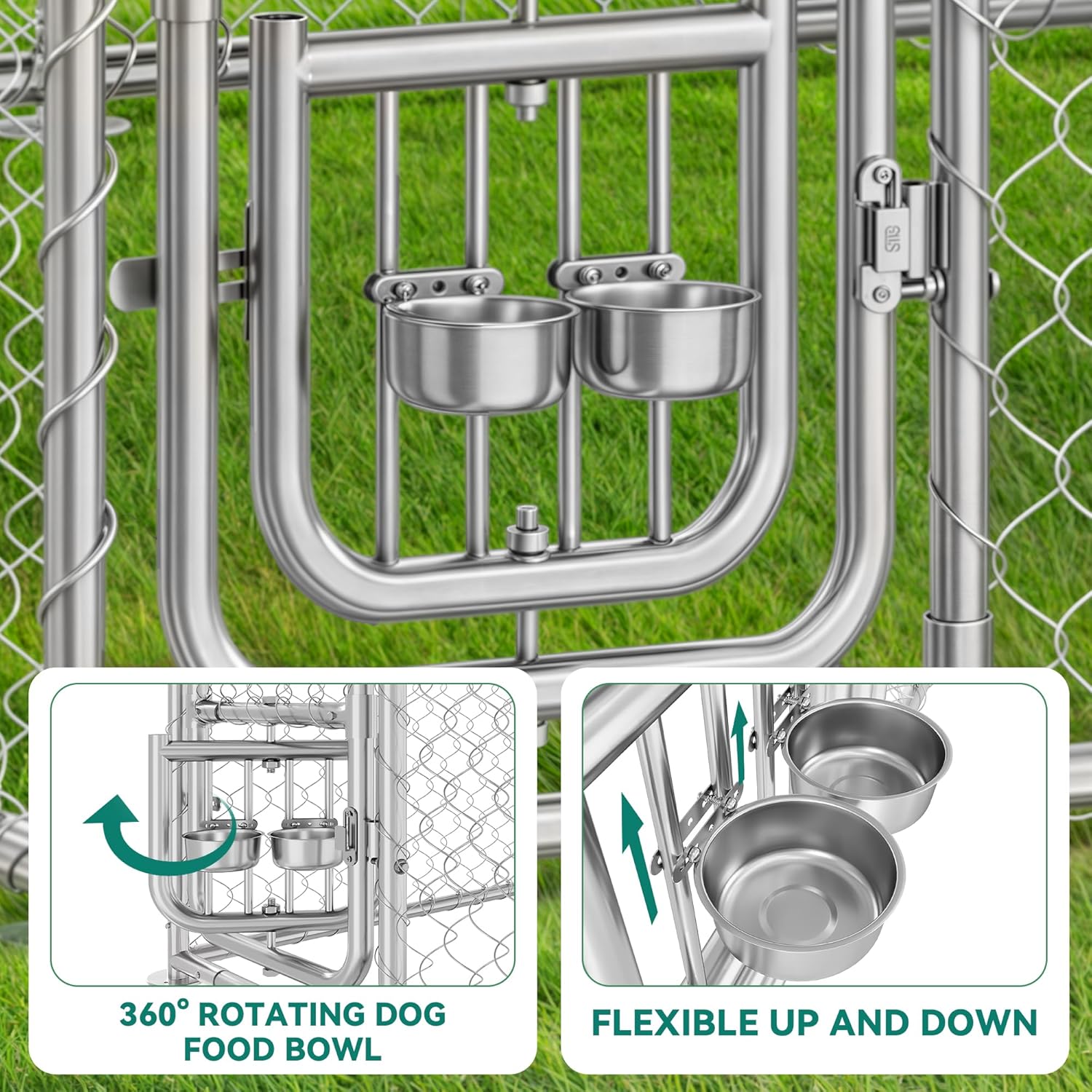 - Effortless Feeding: Make mealtime a breeze with this outside dog kennel, featuring a half-open rotary door, two 5.5-inch stainless steel bowls; Easily refill food and water from outside without needing to enter, while your furry friend wags with joy