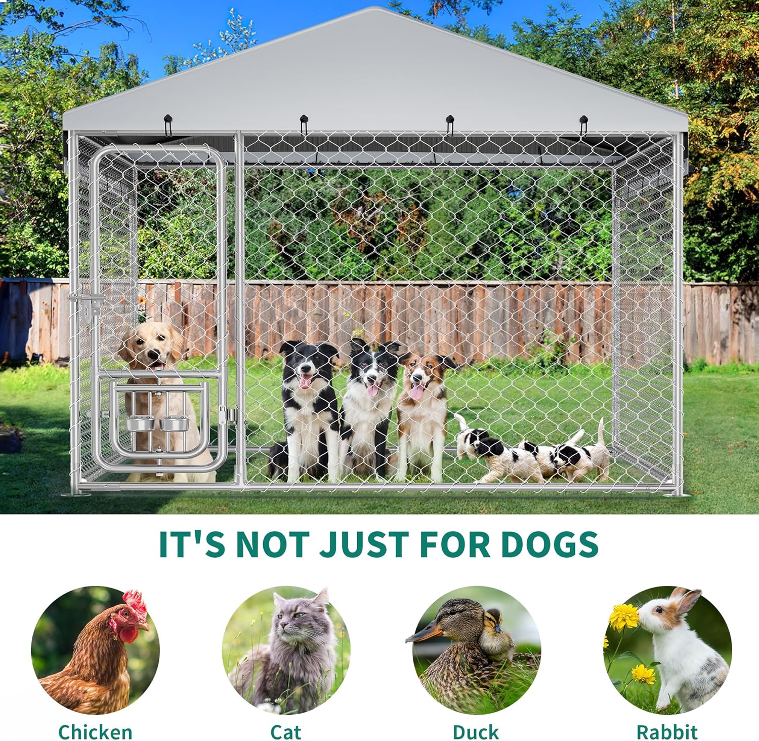 - Spacious Outdoor Haven: This airy, open-design outside dog kennel with roof offers plenty of room for dogs, chickens, rabbits, and ducks to play, run, and thrive; Ideal for multi-pet households seeking the ultimate dog run or outdoor dog enclosure