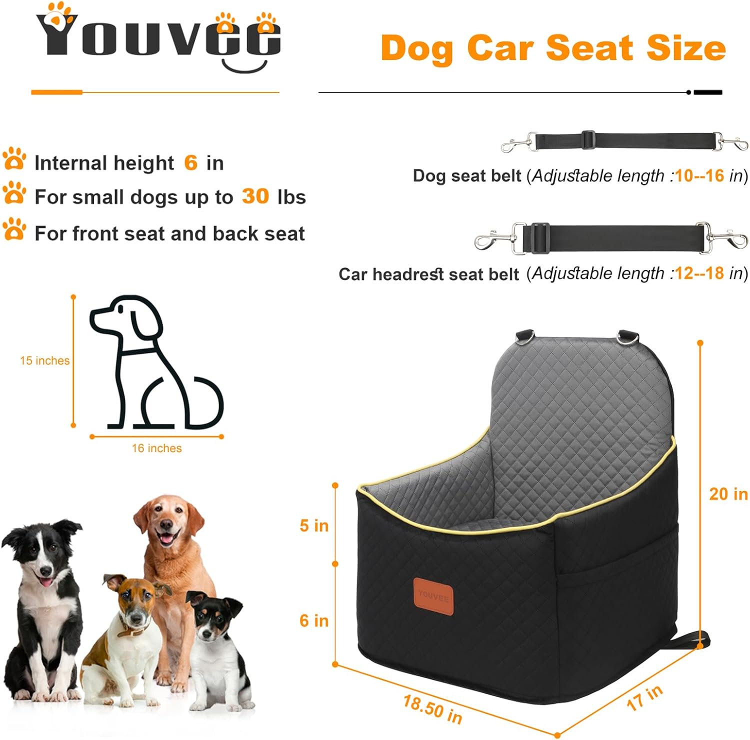 Youvee Dog Car Seat,Elevated Pet Booster with Interior Height 6 Inches for Small Dog up to 30 lbs,Memory Foam Travel Safety Seat for Car Front/Back Seats(View II-Black Outside Grey Inside)