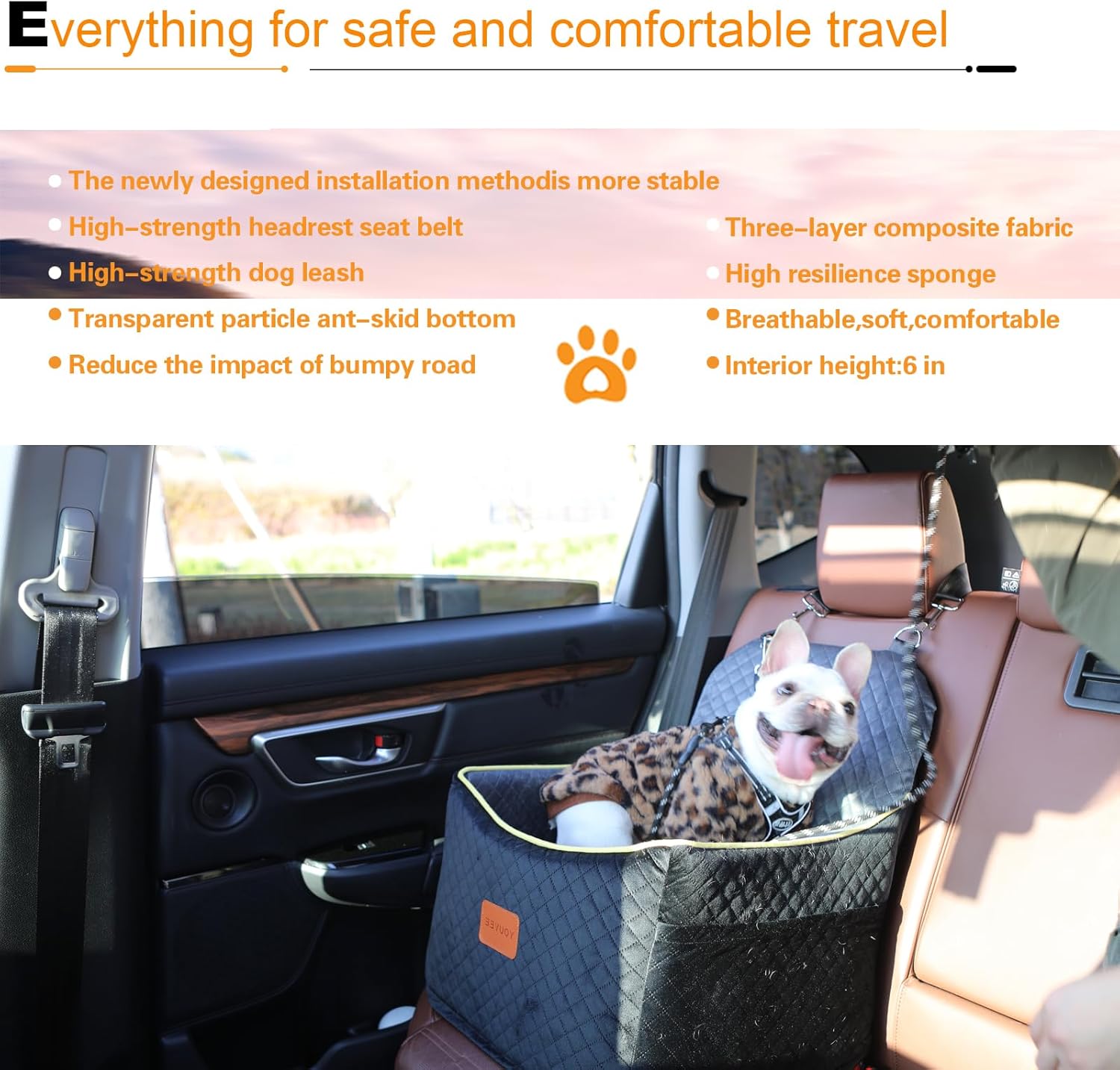 • 【Safety and stable】Safety first, better stability of the dog travel car seat, more worry about driving.Youvee View II lift up dog car seat adopts the new design of car seat belt directly fixed, and the bottom of the non-slip, headrest seatbelt assisted fixing, so you don't have to worry about the stability of the car seat, making driving safer.
