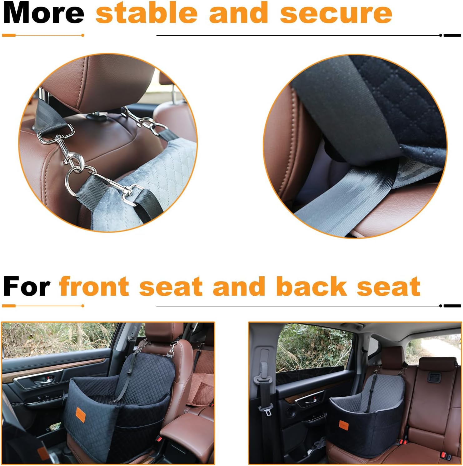 • 【Is it suitable for my car?】This elevated dog car seat is suitable for all vehicles with 3-point seat belts: cars, SUVs, vans, trucks, etc. It can be installed not only on the front seats but also on the back seats.