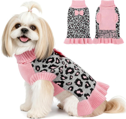 • Leopard and Bow Design: Let your pet wear adorable sweater dresses in the winter, adorned with cute bows throughout the season. Perfect for parties, outdoor walks, and also makes a great Christmas gift for your pet.
