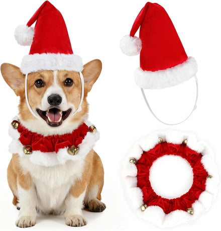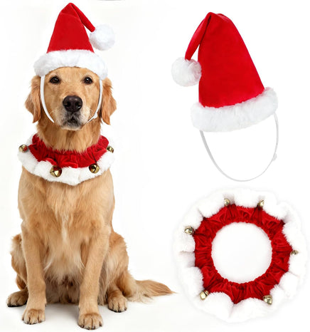 YUEPET 2PCS Adjustable 3D Dog Santa Hat with Muffler Set Red Plush Christmas Scrunchy Collar with Gold Bells Ornaments Soft Dog Xmas Outfit Costume for Cats Small Medium Large XL Dogs Pets (XL)