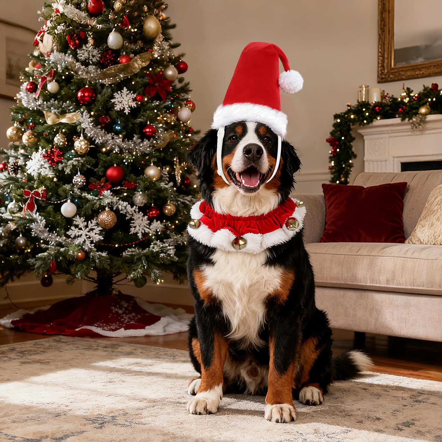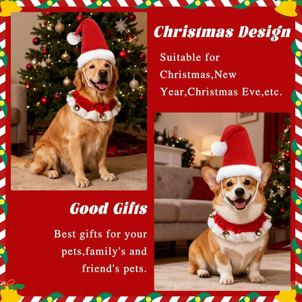 • Dog Christmas outfit: You will receive a 3D dog santa hat and an elastic plush christmas dog collar with a golden bell; The cat santa hat features a 3D three-dimensional design, with a carefully sewn golden bell on the christmas cat collar; The classic Christmas colors of red and white are full of Christmas atmosphere, making your pets look cute and charming during Christmas