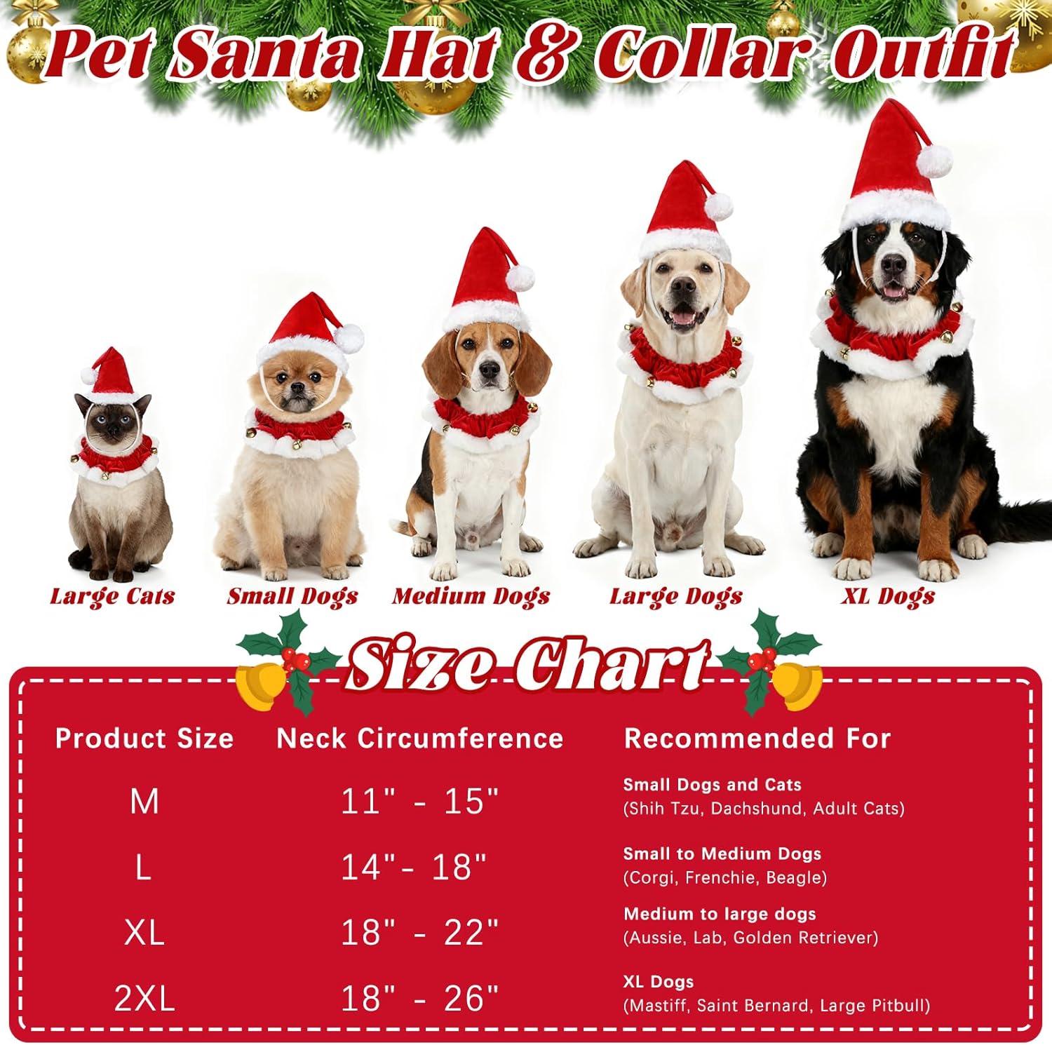 • Multiple size options: Our christmas pet hats come in S and M sizes, while our christmas neckwear come in 4 sizes: M, L, XL, and 2XL; For your convenience in choosing, the hat and scarf sizes have been matched for you; S size hat paired with M and L size necklaces, M size hat paired with XL, 2XL necklaces; Tip: Please choose the appropriate size based on your pet's head/neck circumference measurement data