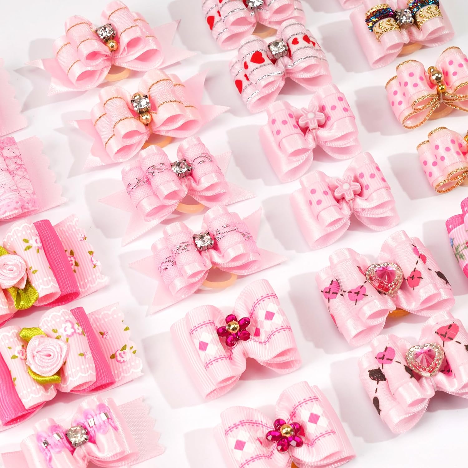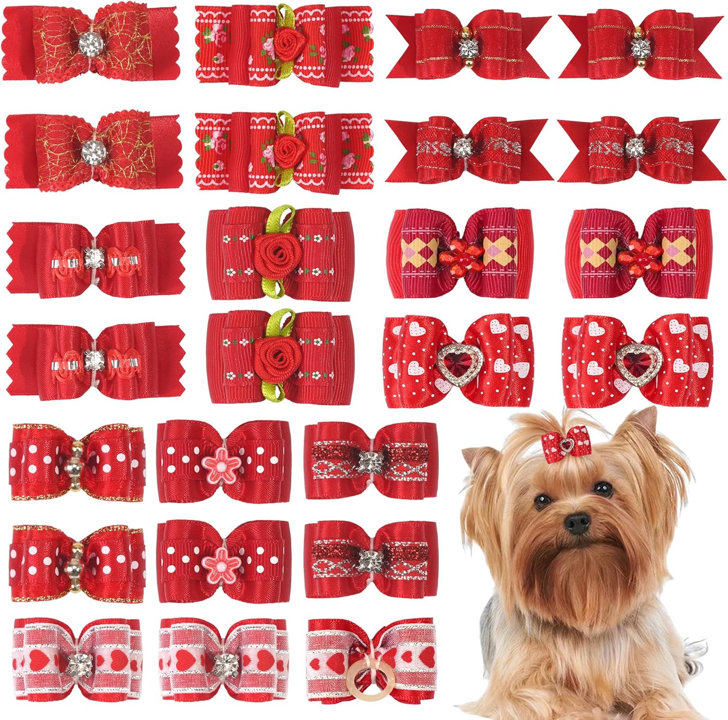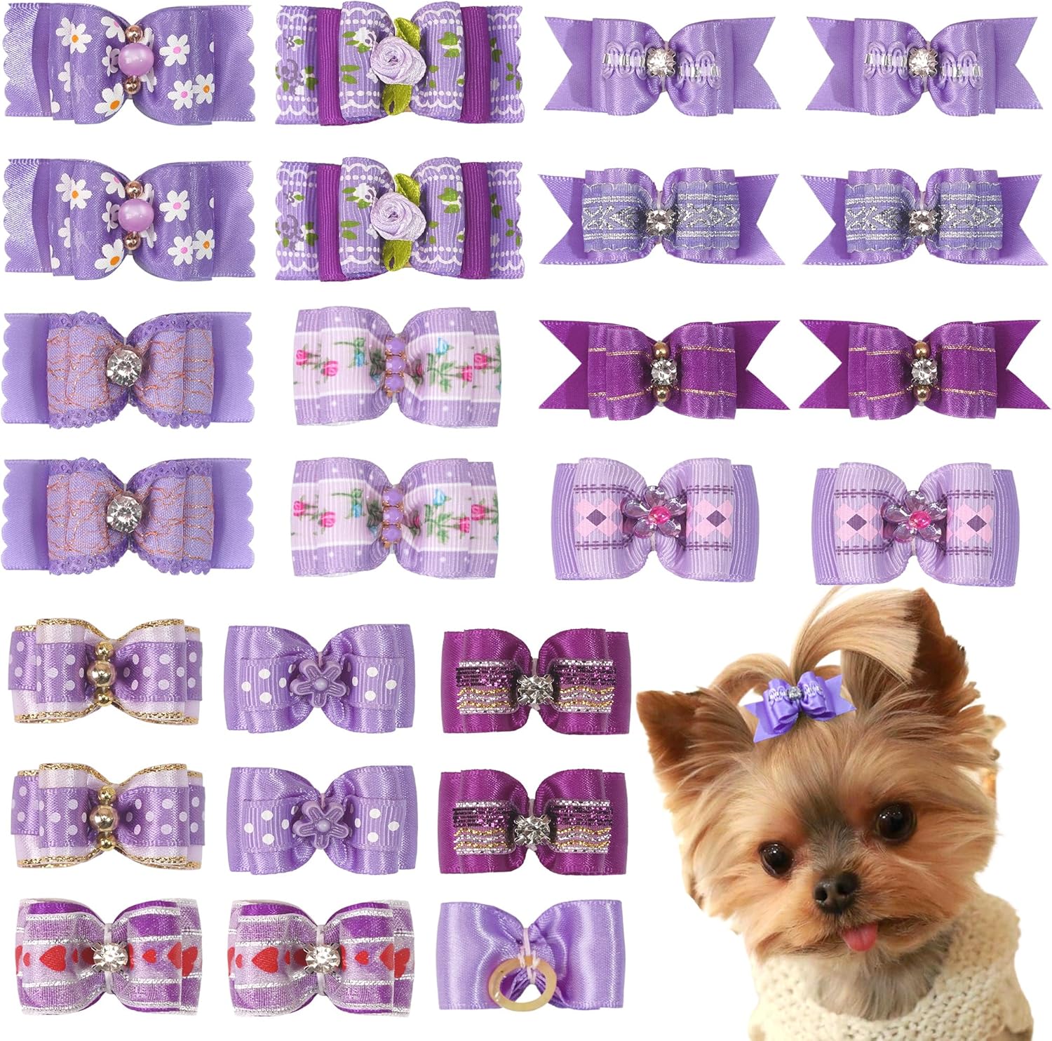 - Cute & Durable - The dog hair accessories for small dogs are made of high quality grosgrain ribbons and rubber bands. The handmade bow is sewn on the back of the rubber band and glued together with hot glue for double fixation. All bows keep good shape, lovely and beautiful.