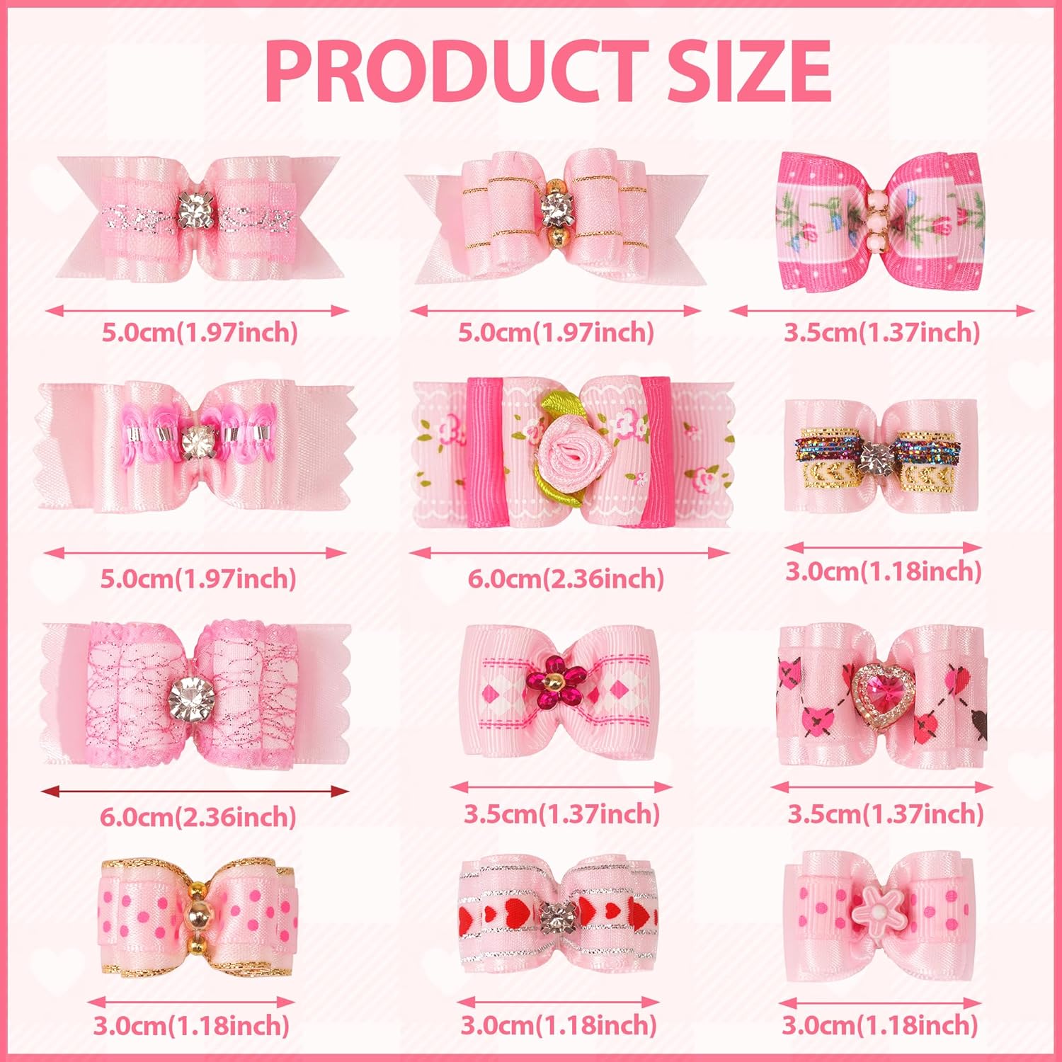 - Super Value 24PCS - The cute girl dog bows set contains 24 pieces/ 12 kinds of puppy bowknot in various colors. The dog grooming bows is perfect to attach to pet hair for a fancy hairstyle.