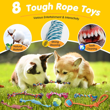 Zeaxuie 25 Pack Luxury Dog Chew Toys for Puppy, Dog Toys with Ropes, Treat Ball and Squeaky Puppy Toys for Teething Small Dogs