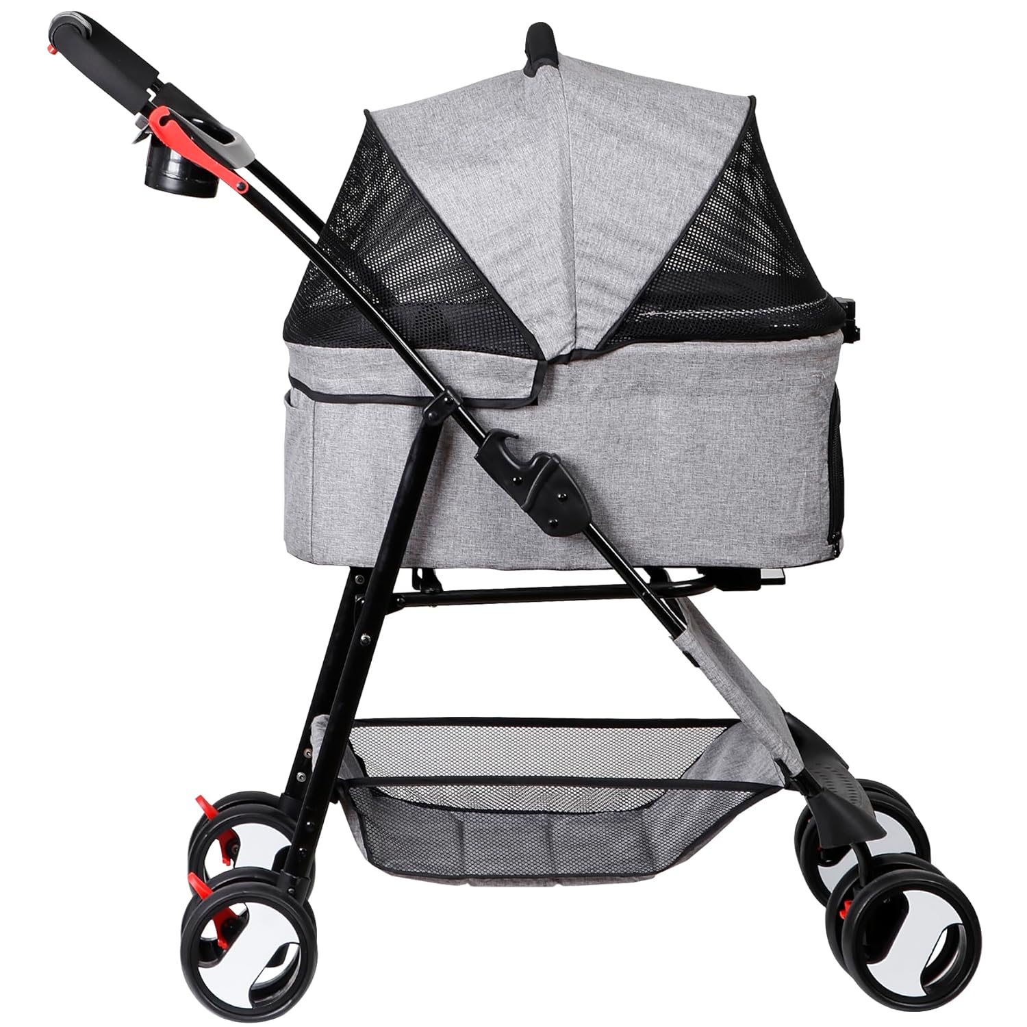 - 【Convenient Storage Design】The pet carrier have 2 wonderful cup holders a spacious basket underneath the dog stroller for your purse,toys, treats, and water bottles, etc. So you can pack in all your essentials for a great time wherever you and your pet are going