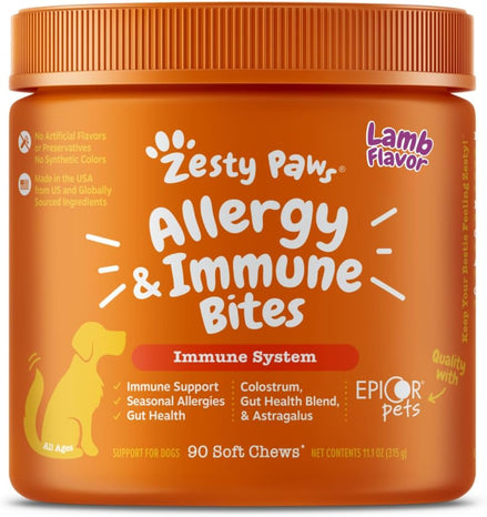 - ITCHY DOG SKIN RELIEF: Contains Colostrum and Astragalus Root, Zesty Paws Allergy Relief Chews provide relief for itchy skin and support normal histamine levels, keeping your dog's skin comfortable