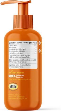 As a source of Omega-3 fatty acids (EPA and DHA), Zesty Paws mouthwatering Wild Alaskan Salmon Oil is a premium fish oil that provides support as a skin health booster to help canine and feline pets - large or small - look as great as they feel. Your dog and cat will surely get hip to it and love it!